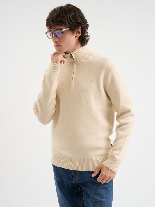 Maglia half zip in mesh jacquard