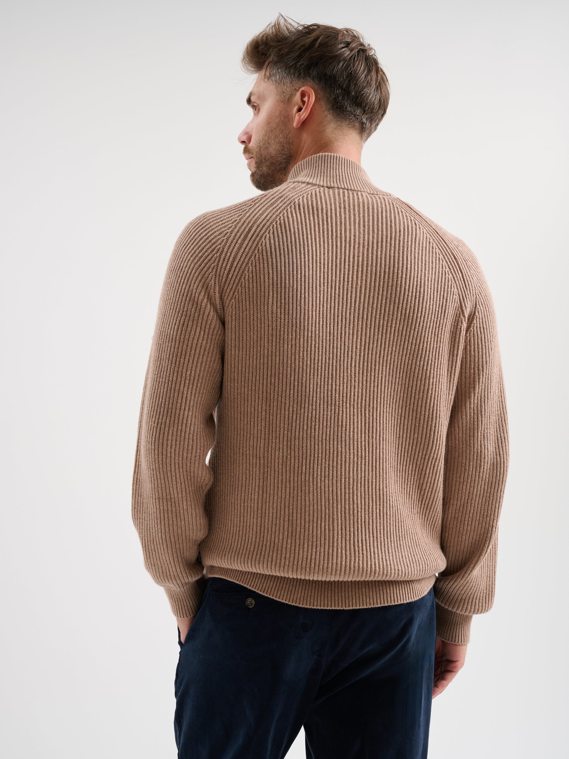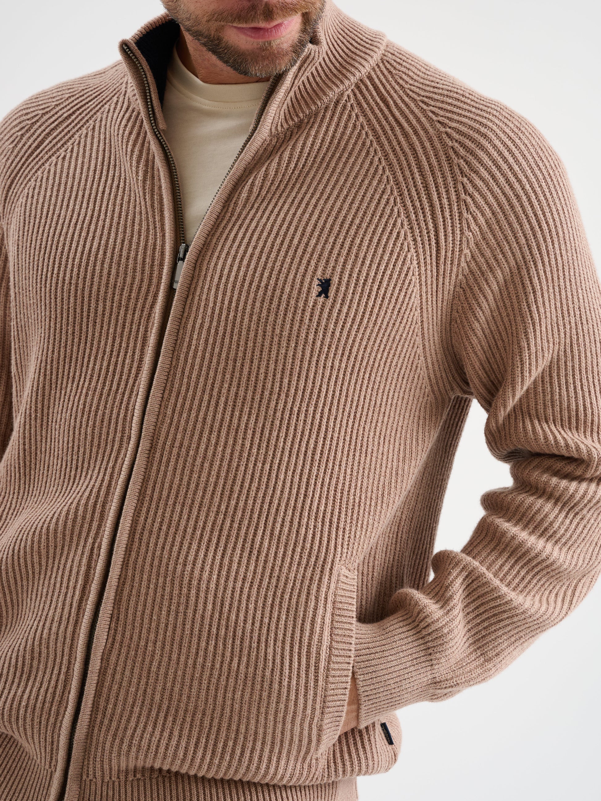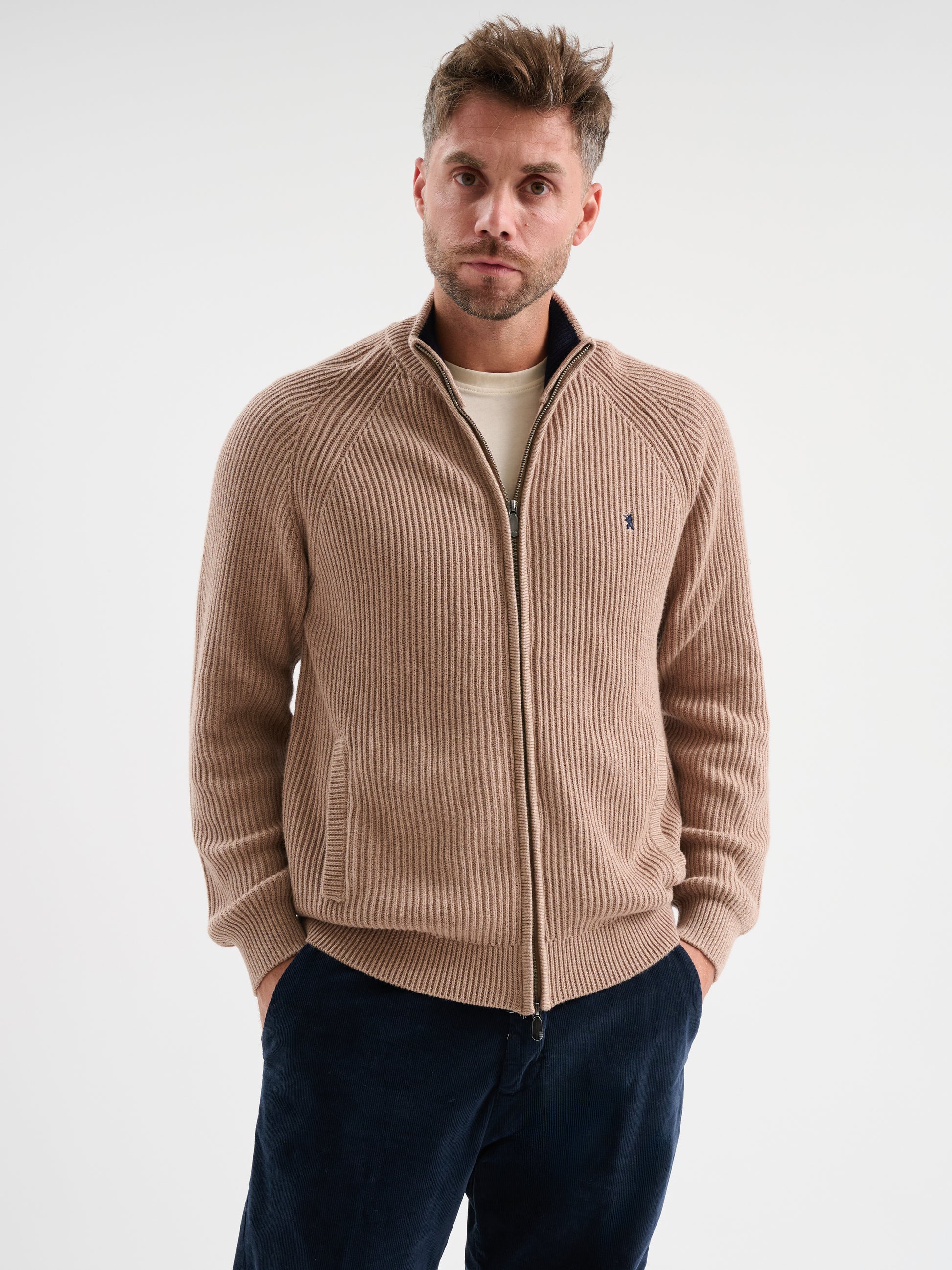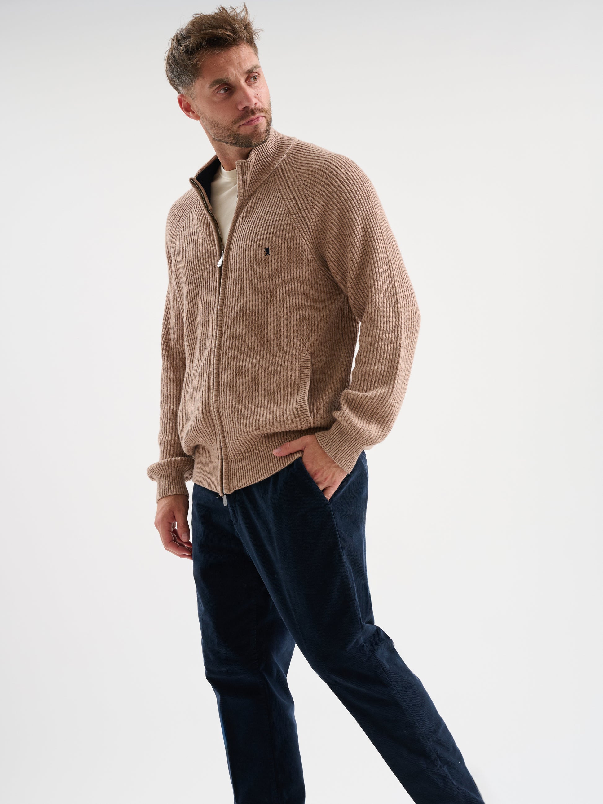 Bomber raglan full zip in maglia perlata misto cotone e cashmere a maniche lunghe, con costine su collo, polsi e fondo e logo ricamato, regular fit