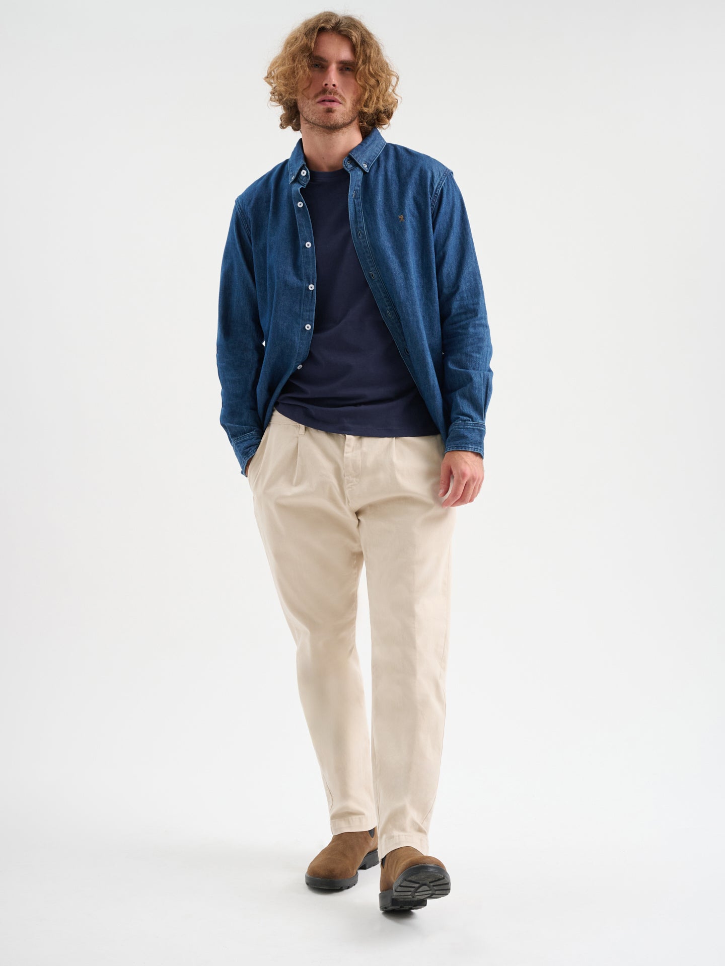 Camicia button down a maniche lunghe in tessuto light denim con cannoncino e loghi ricamati, custom fit