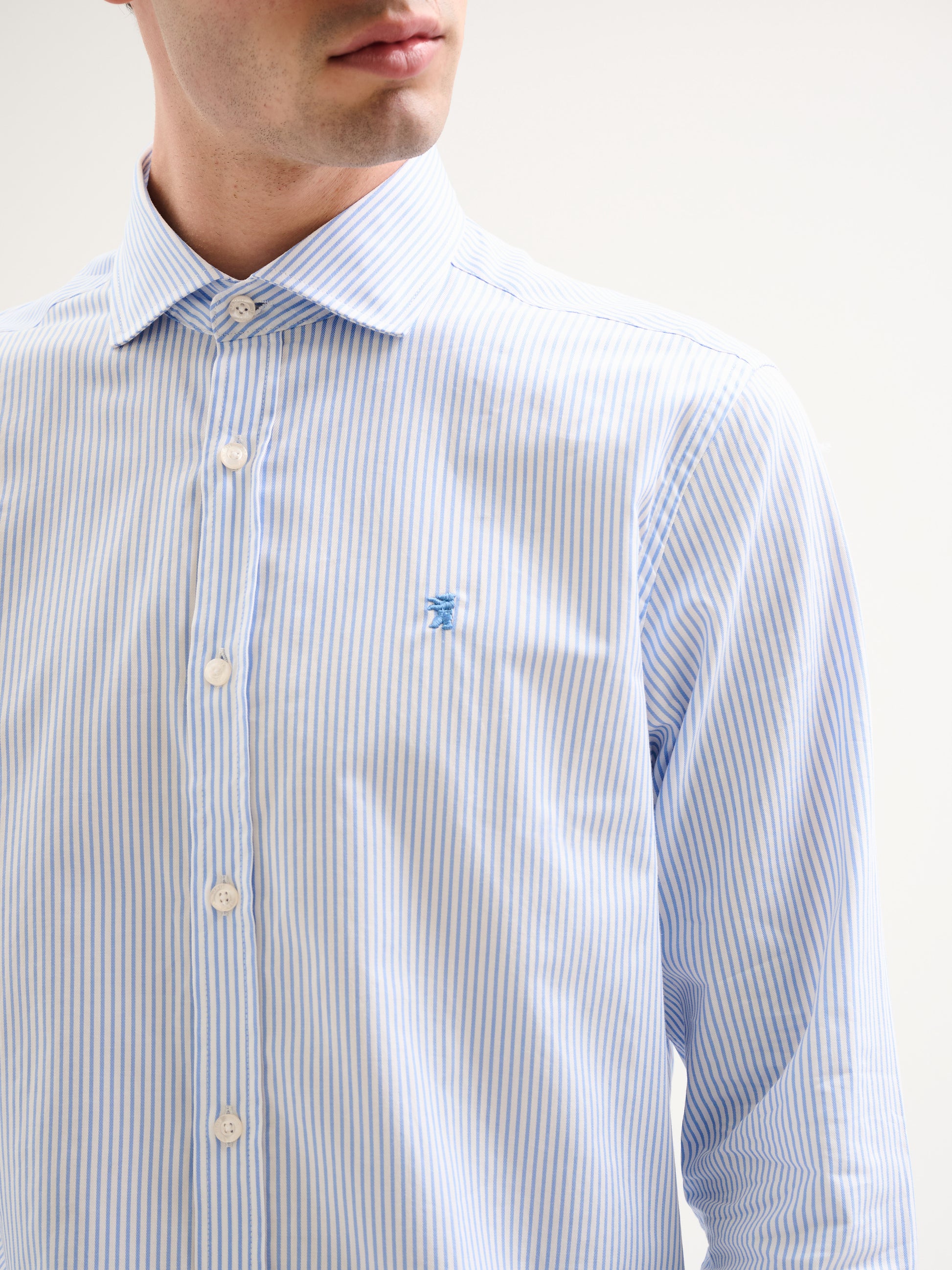 Camicia con collo alla francese a maniche lunghe in twill di cotone a righe e con logo ricamato, tailored fit