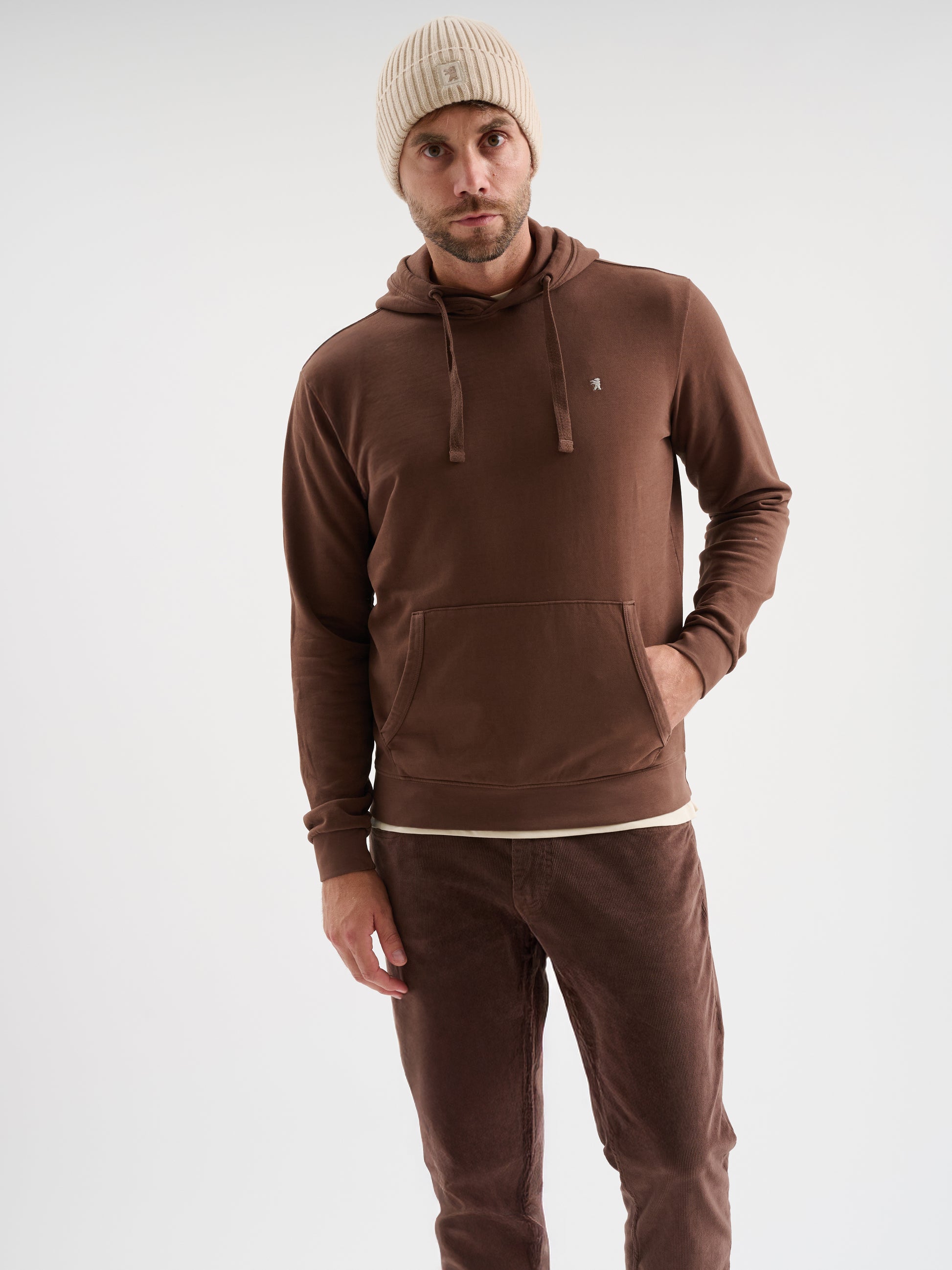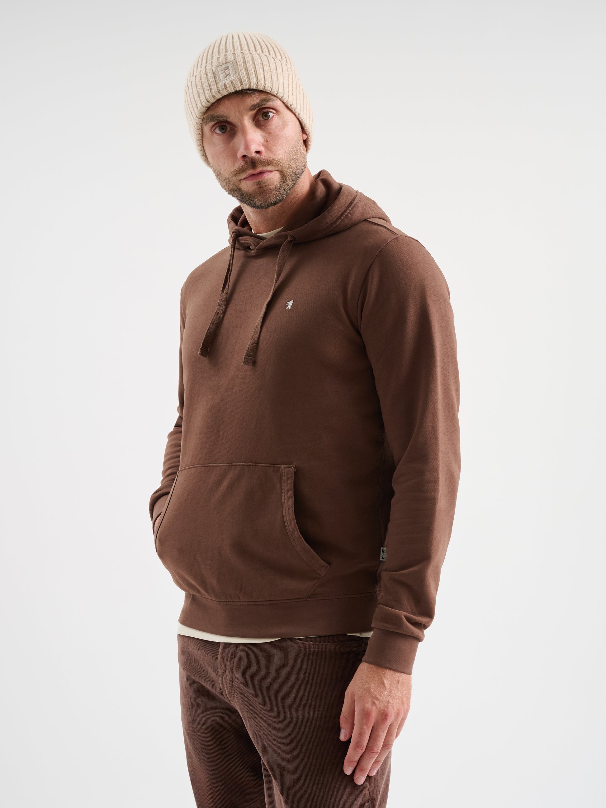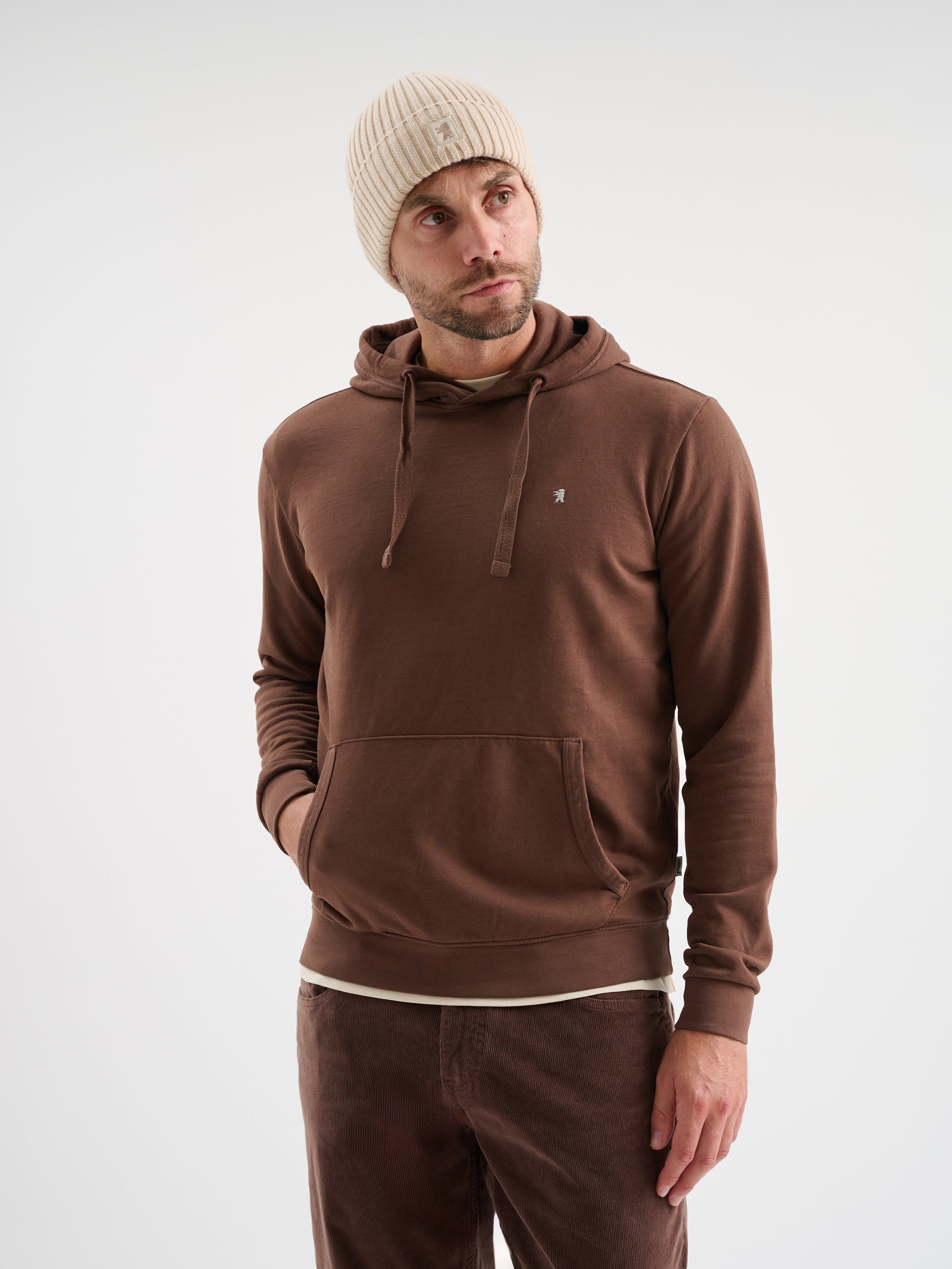 Felpa con cappuccio a maniche lunghe in cotone garzato con tasca a marsupio e logo ricamato, regular fit