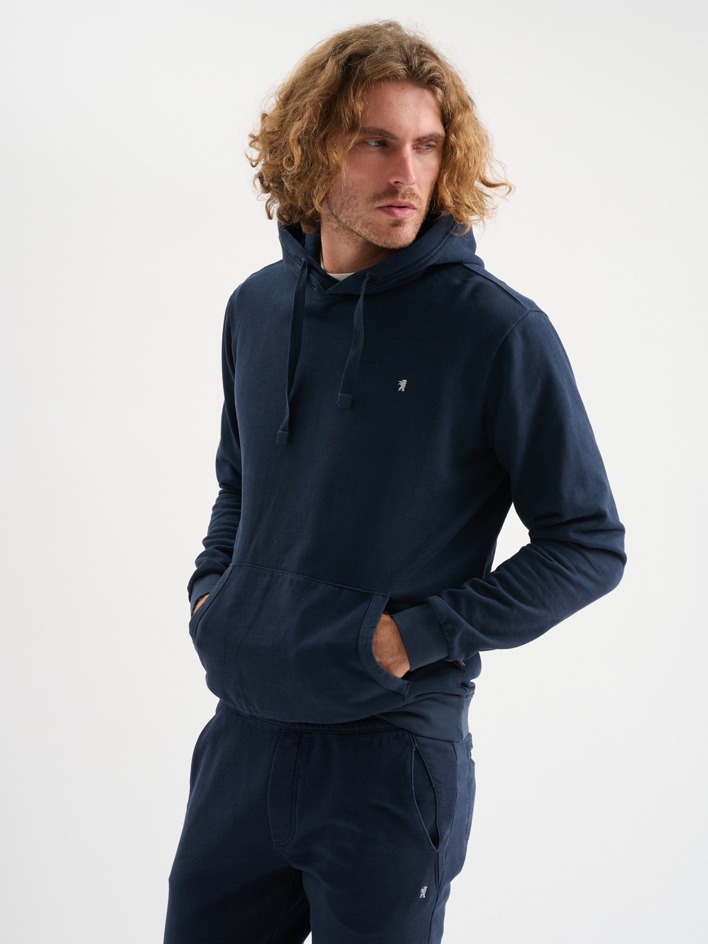 Felpa con cappuccio a maniche lunghe in cotone garzato con tasca a marsupio e logo ricamato, regular fit