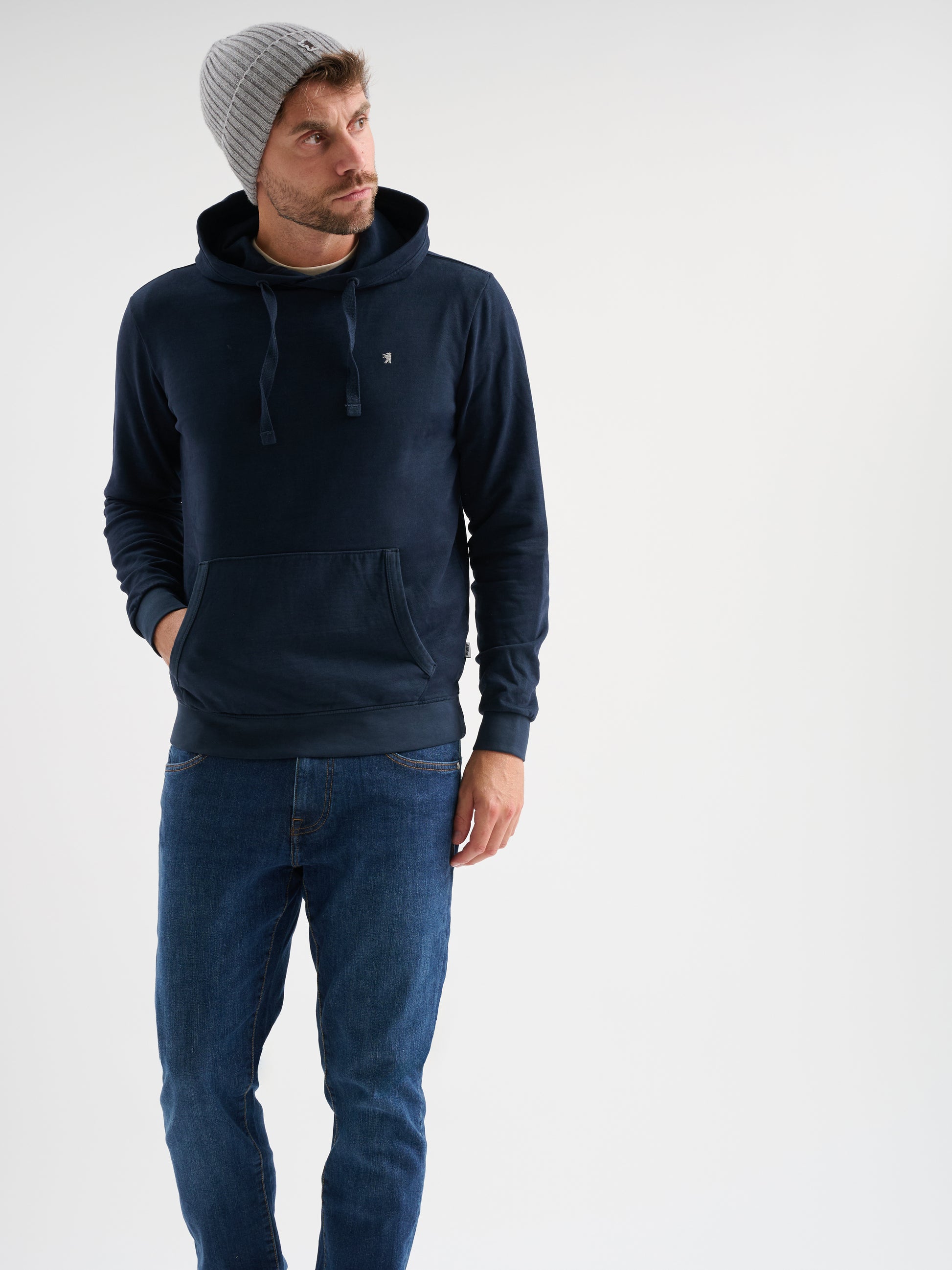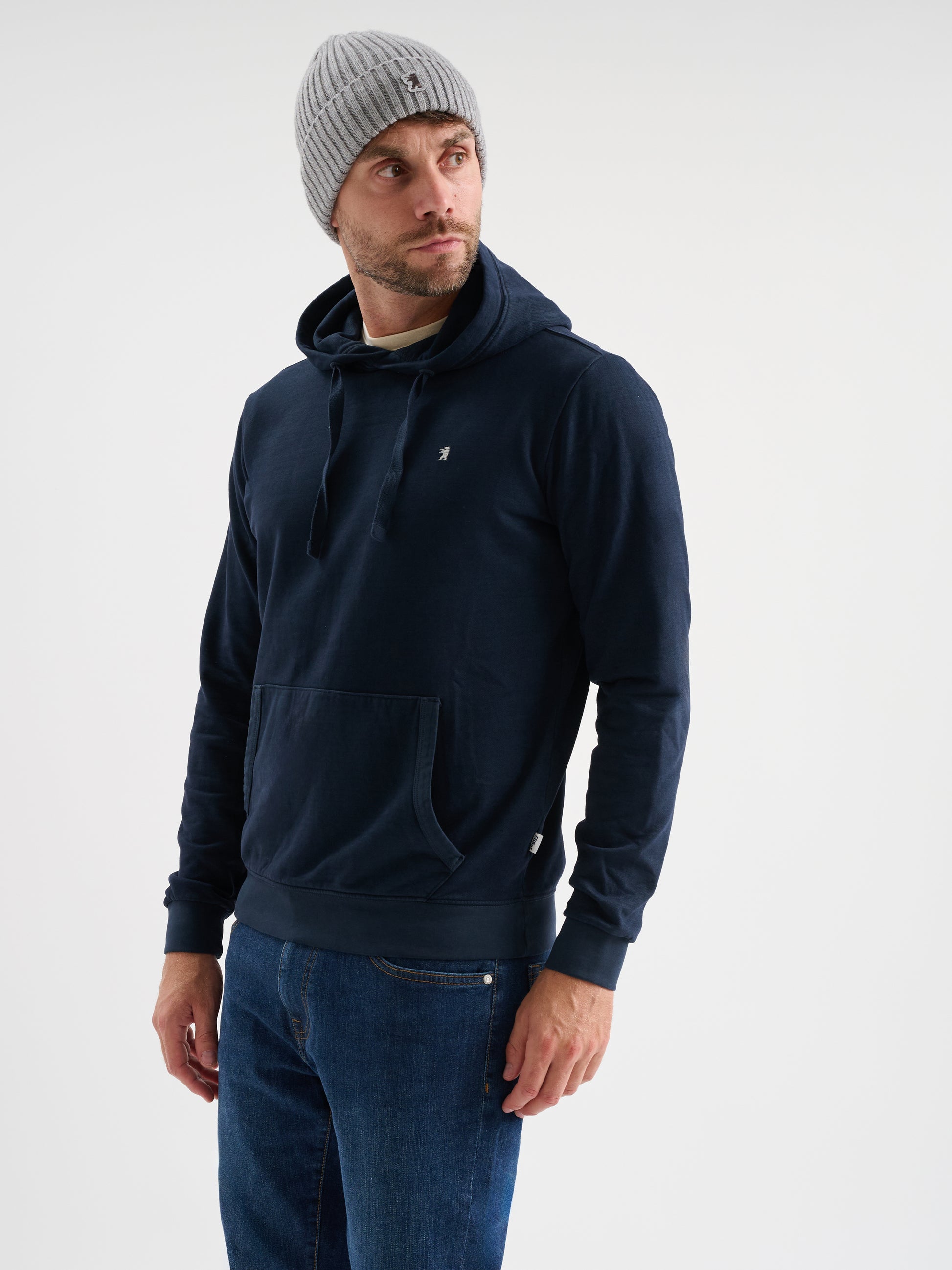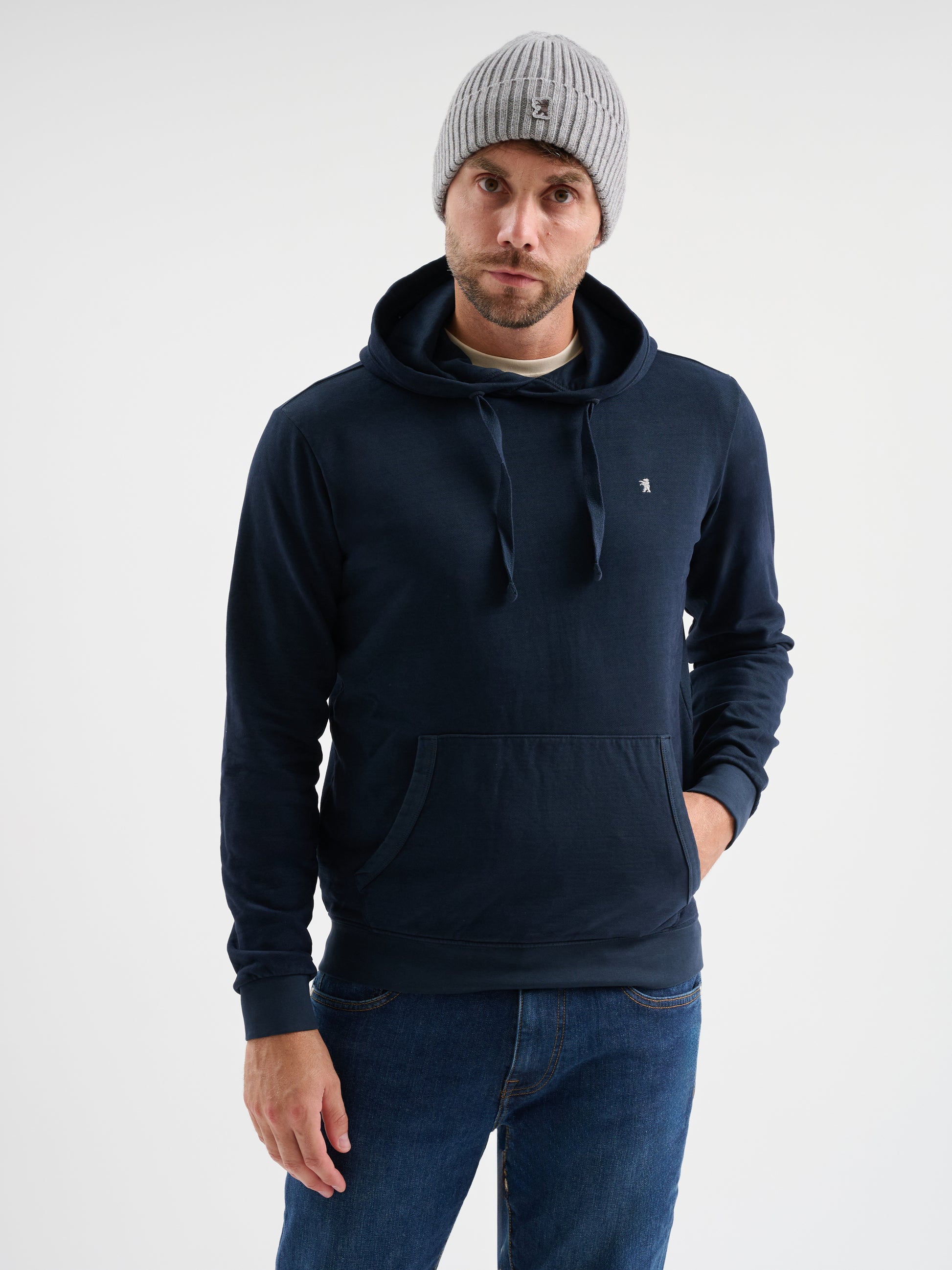 Felpa con cappuccio a maniche lunghe in cotone garzato con tasca a marsupio e logo ricamato, regular fit