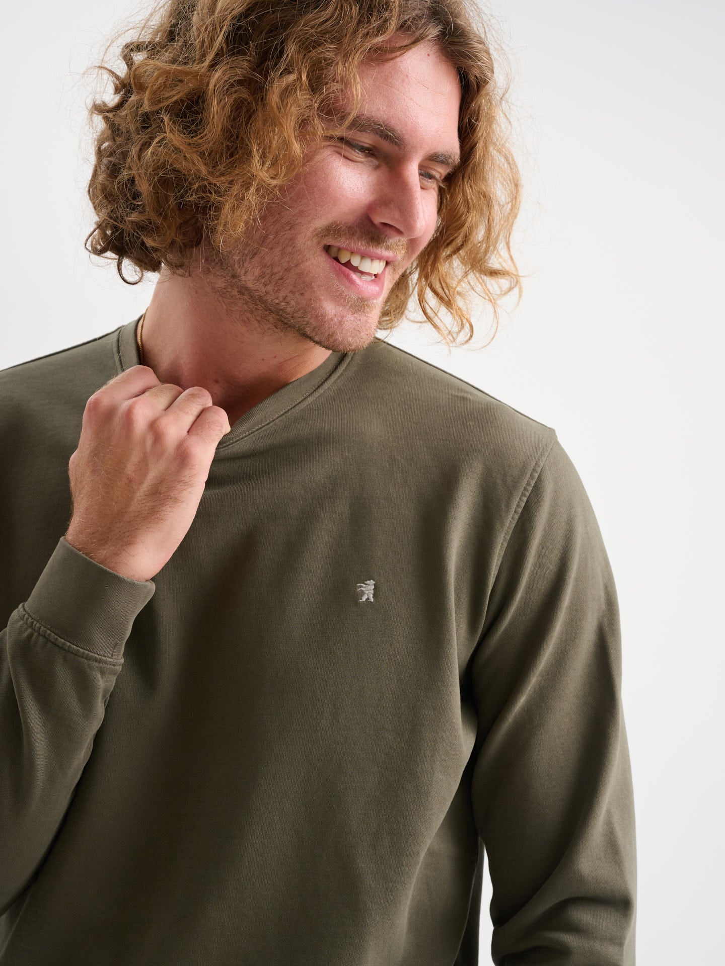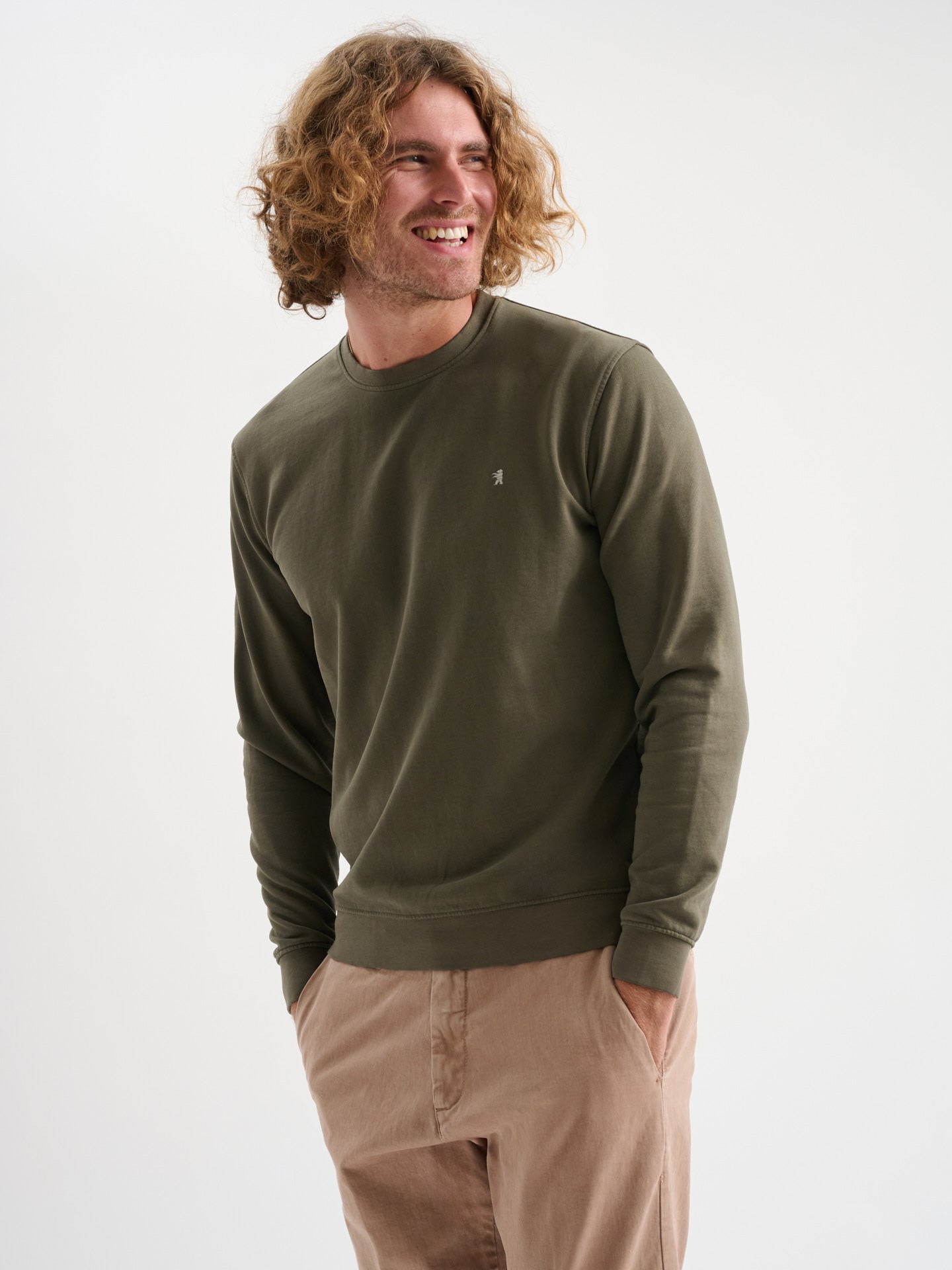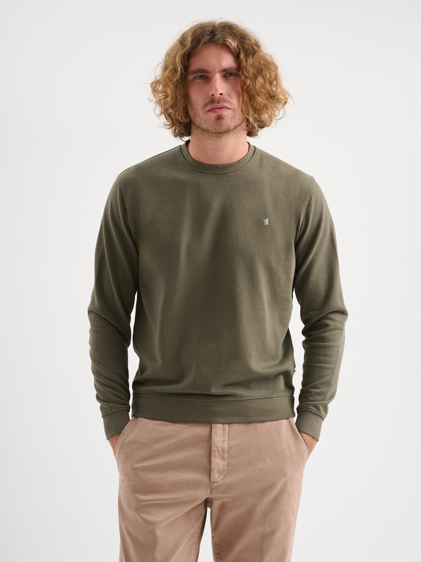 Felpa girocollo a maniche lunghe in cotone garzato con logo ricamato, regular fit