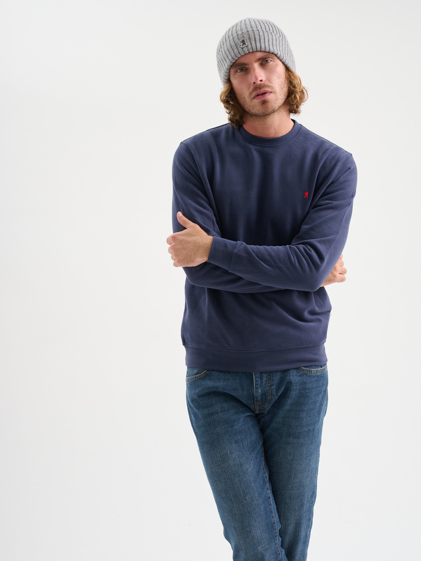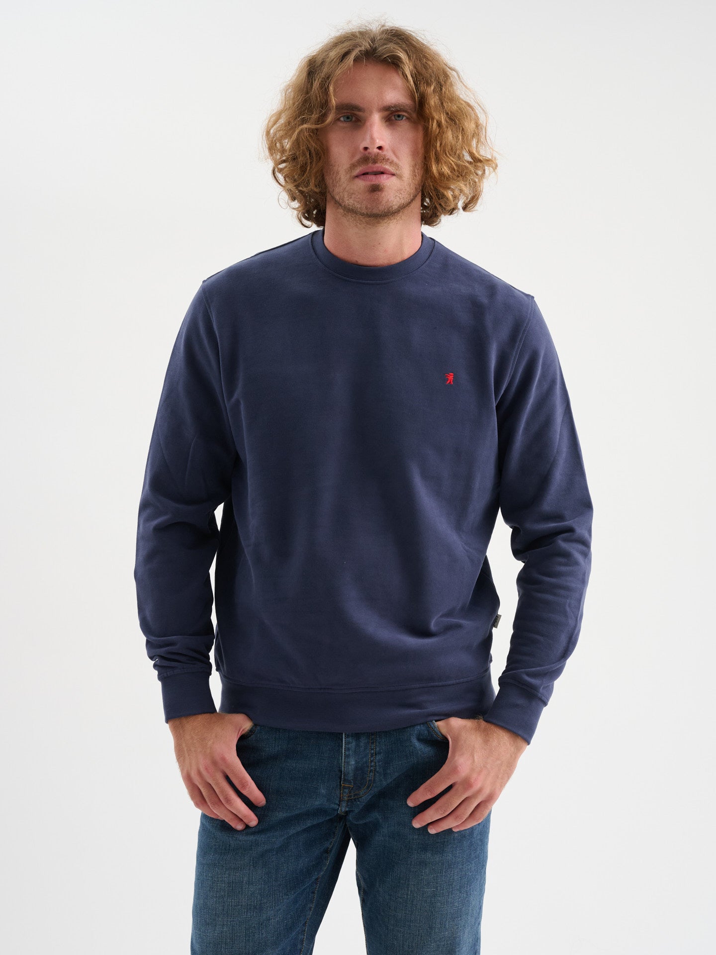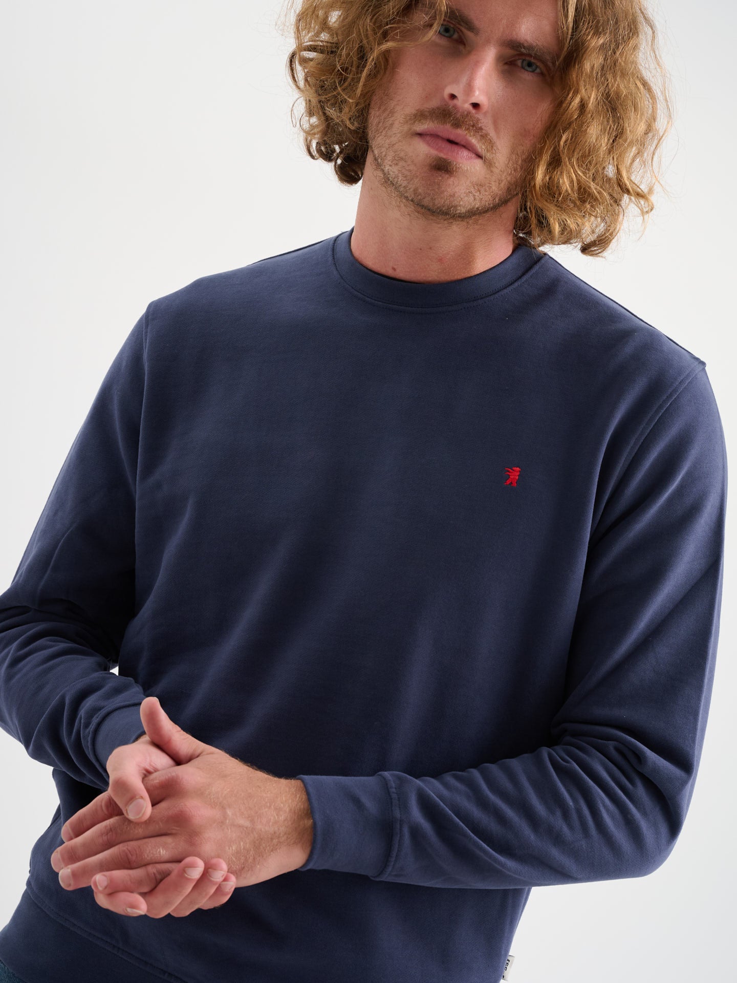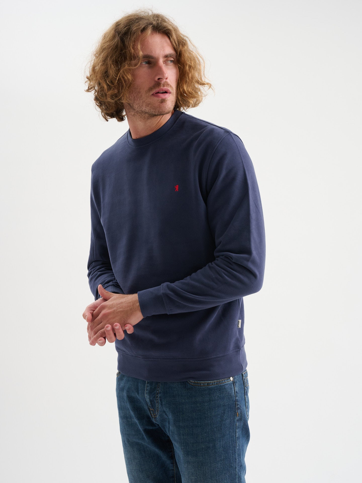 Felpa girocollo a maniche lunghe in cotone garzato con logo ricamato, regular fit