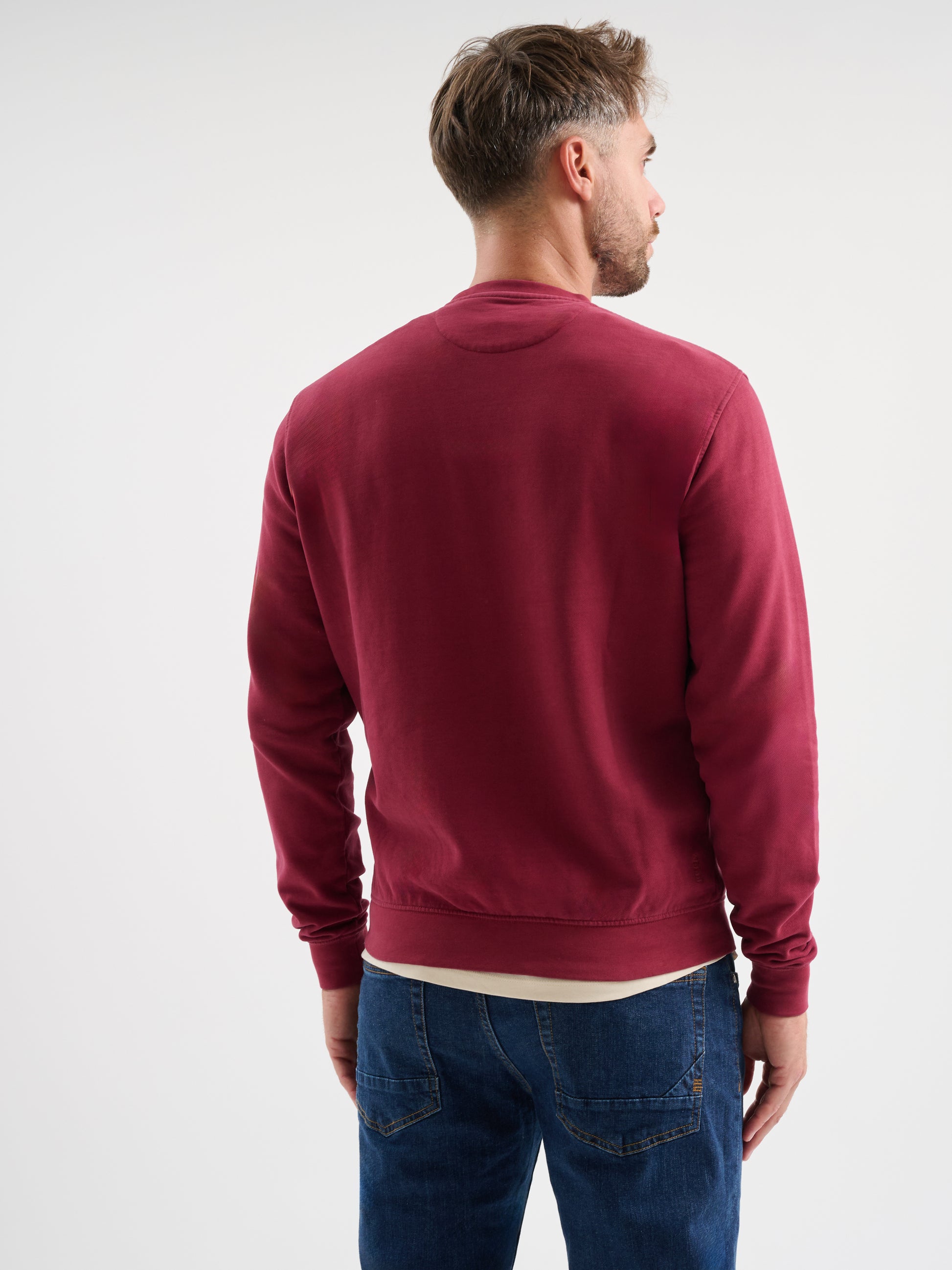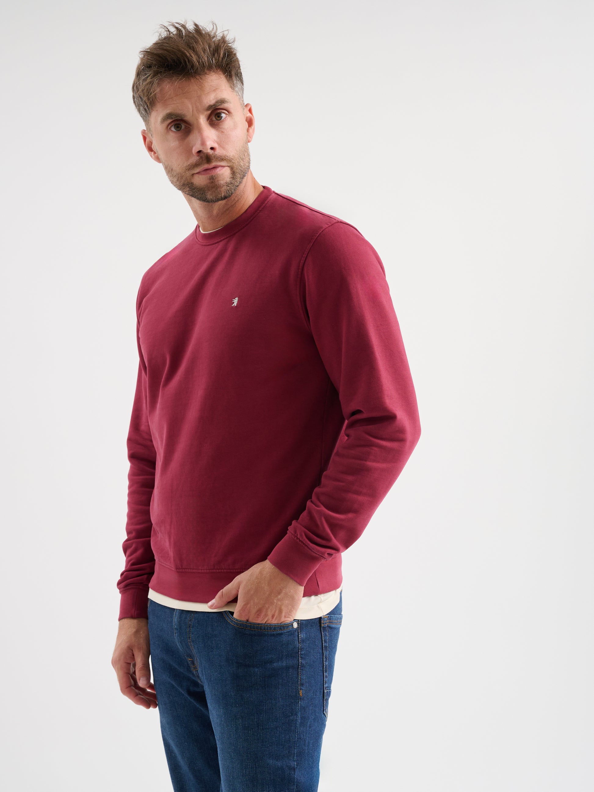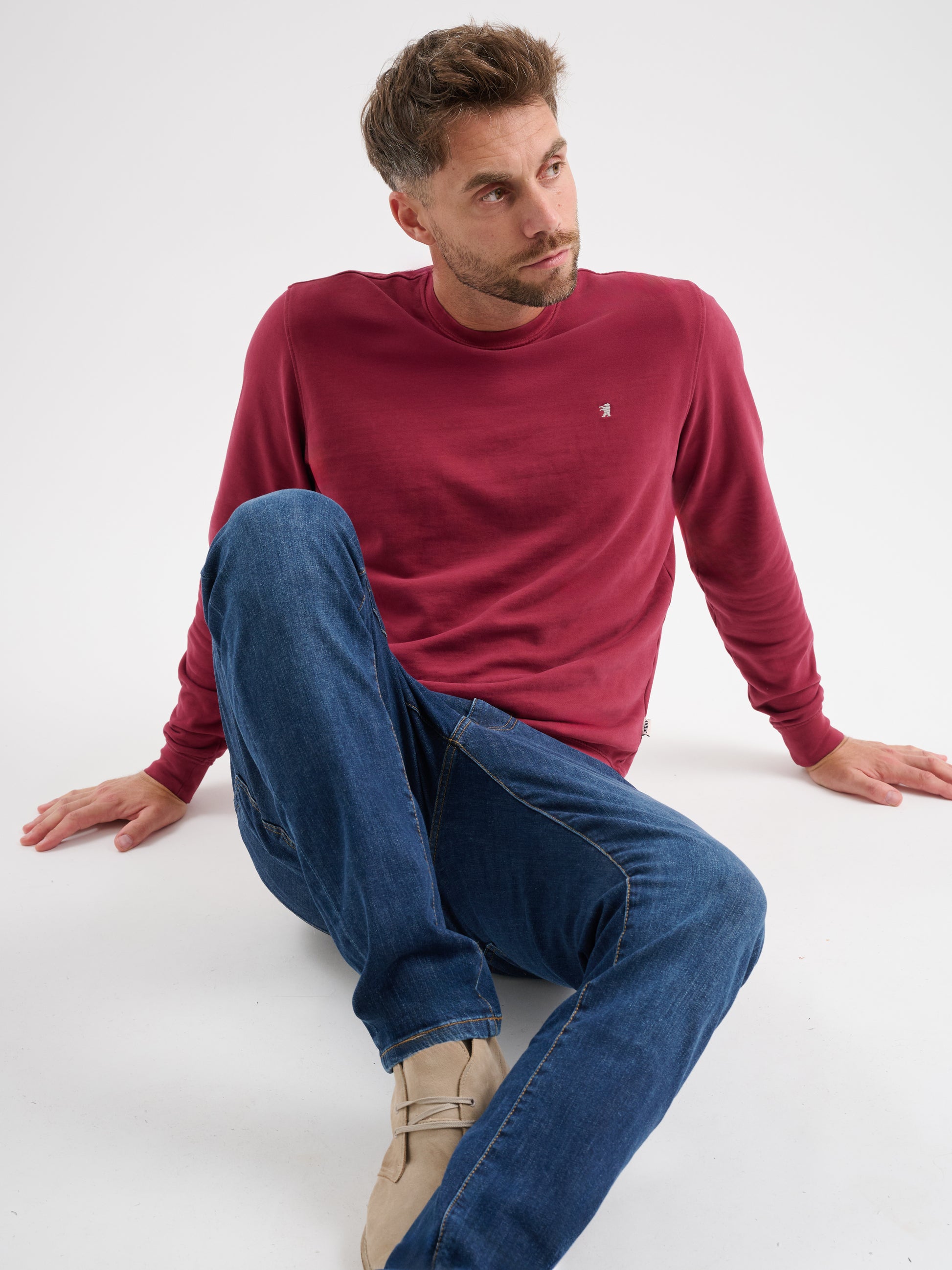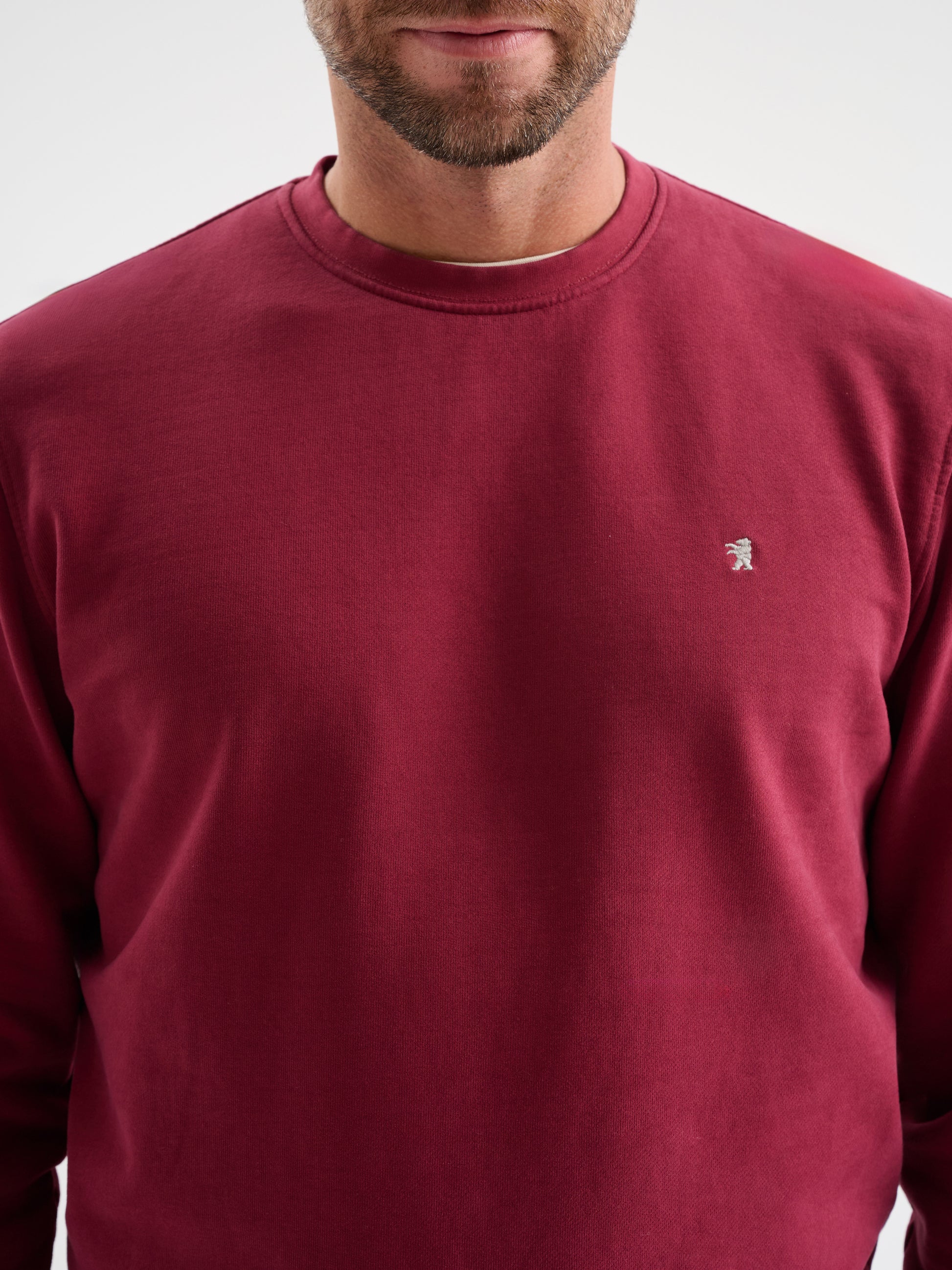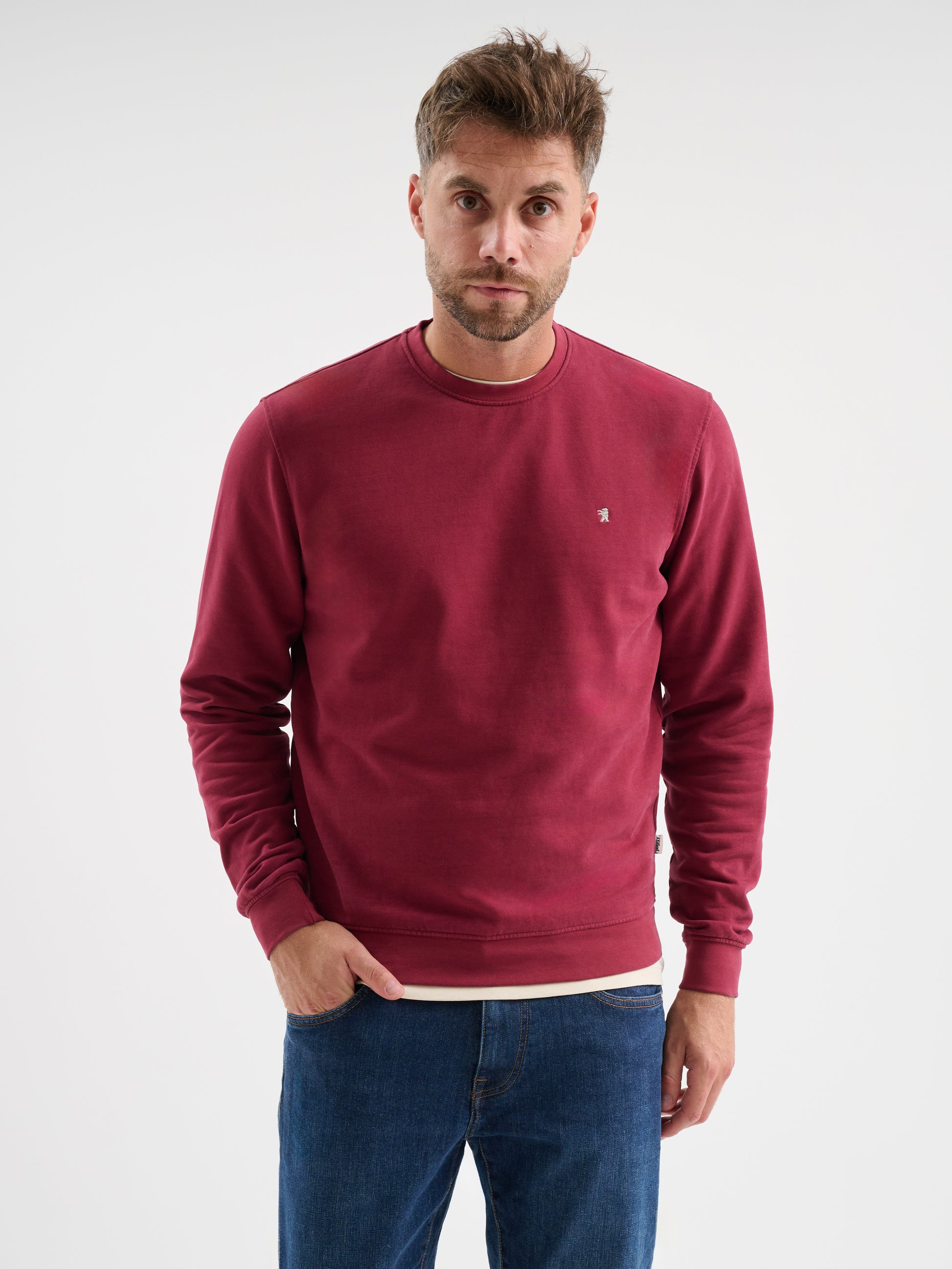 Felpa girocollo a maniche lunghe in cotone garzato con logo ricamato, regular fit