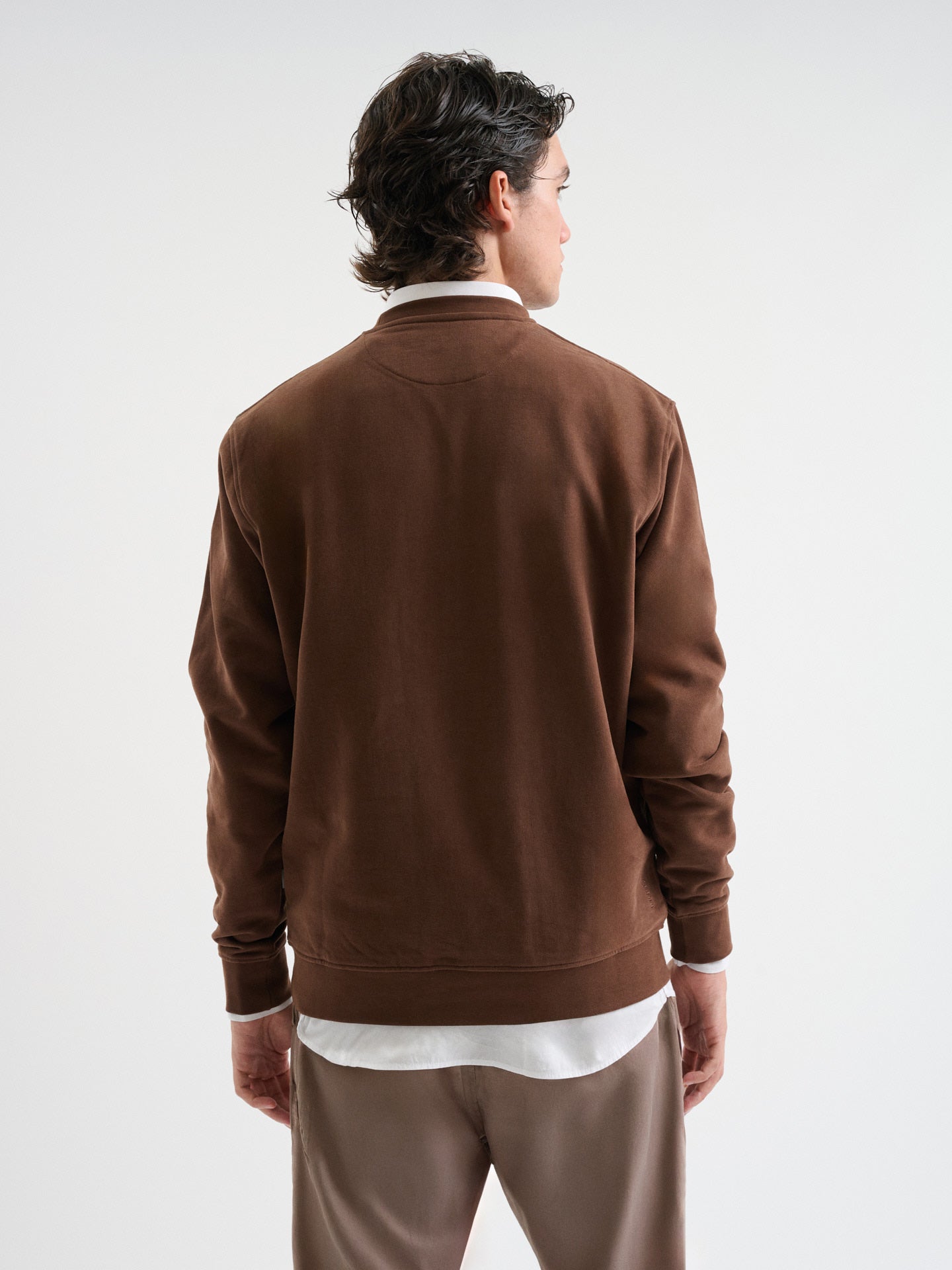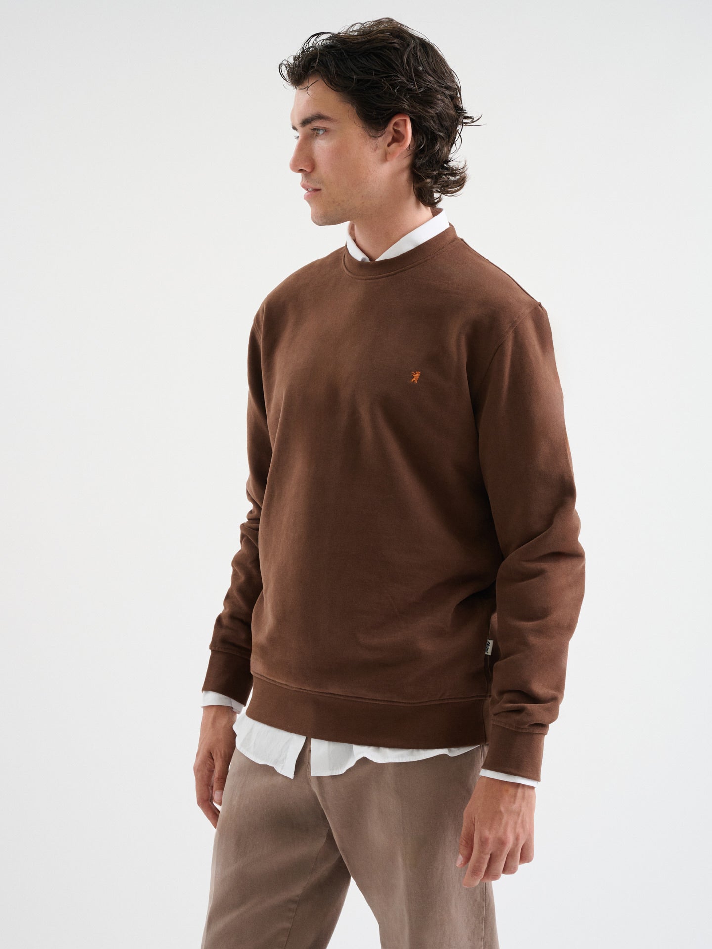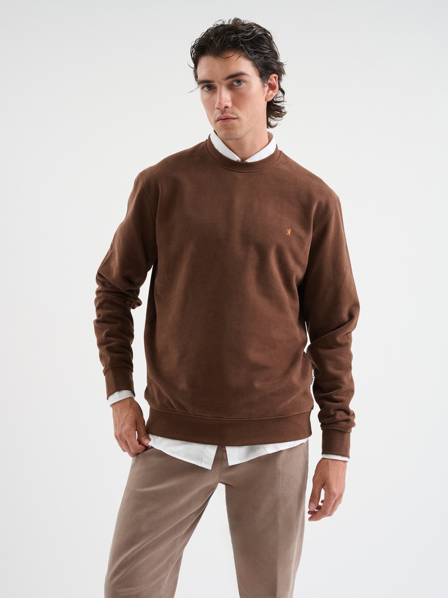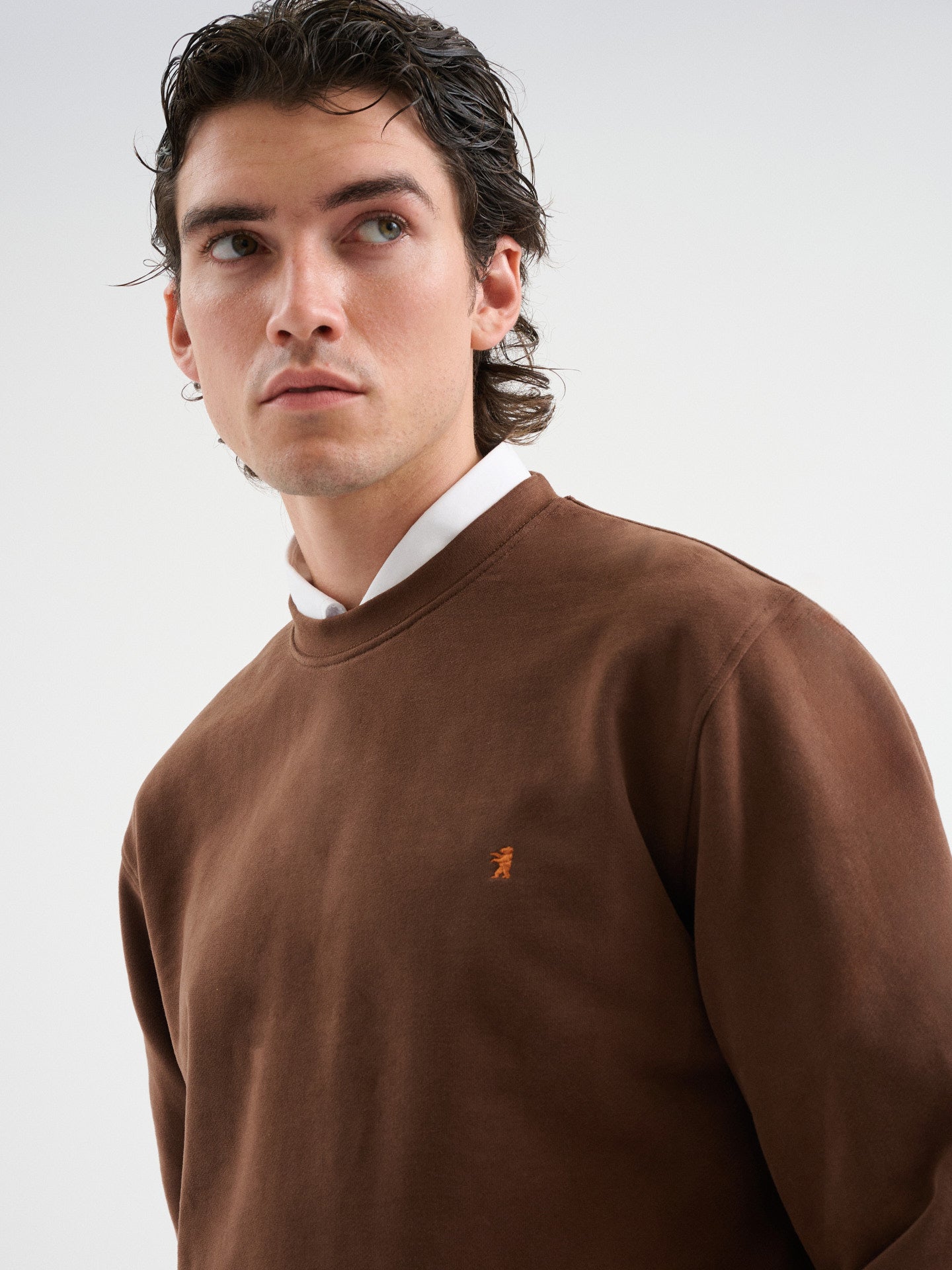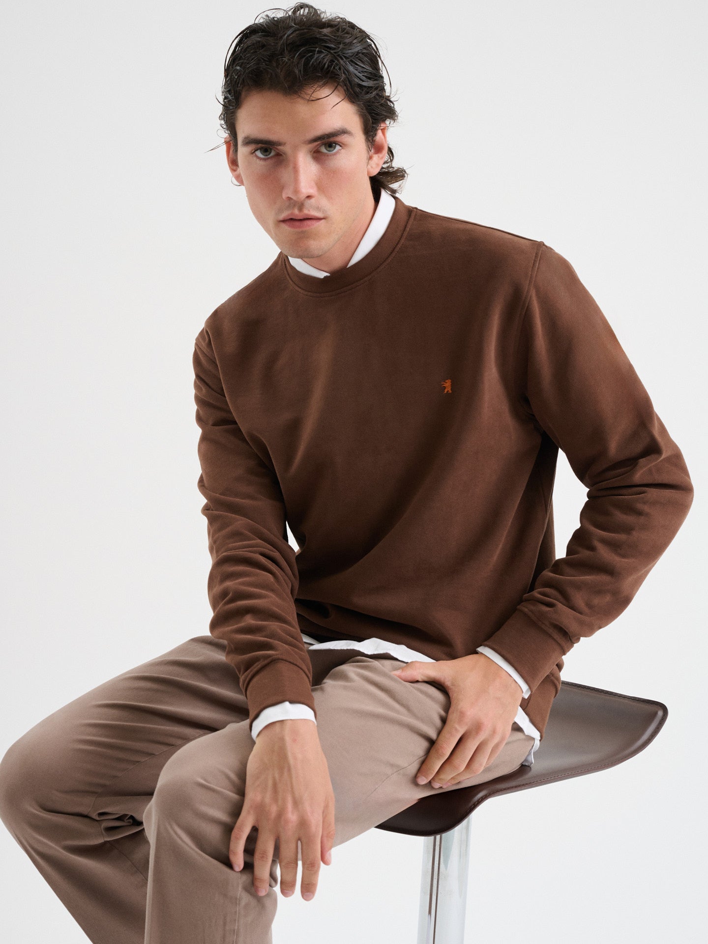 Felpa girocollo a maniche lunghe in cotone garzato con logo ricamato, regular fit