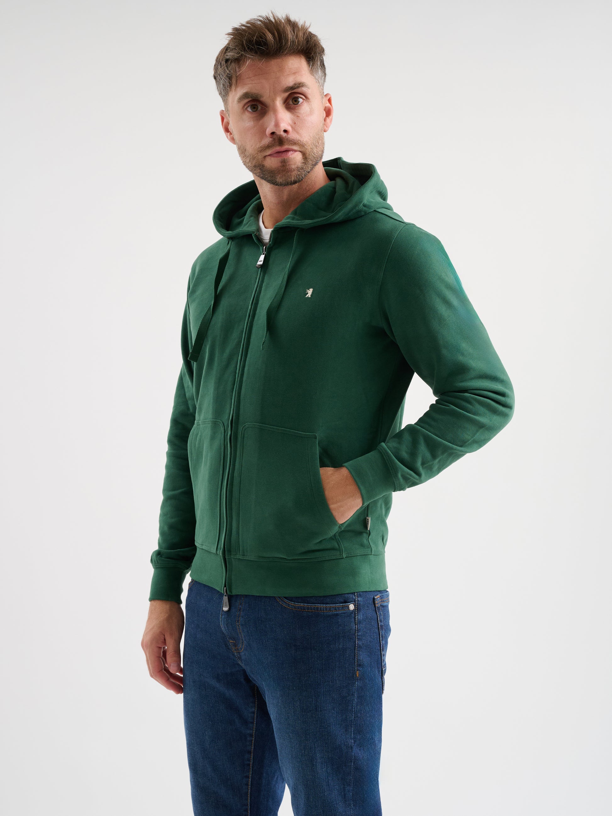 Felpa full zip con cappuccio a maniche lunghe in cotone garzato con tasche a marsupio sul fronte e logo ricamato, regular fit