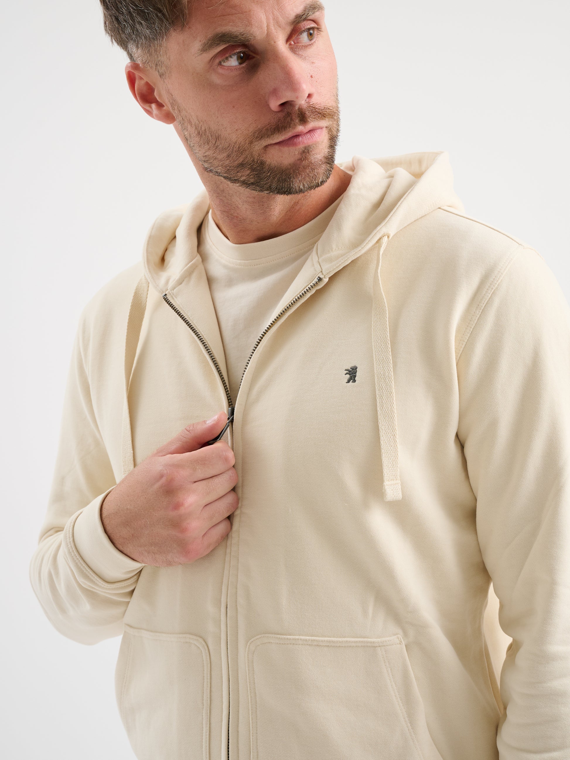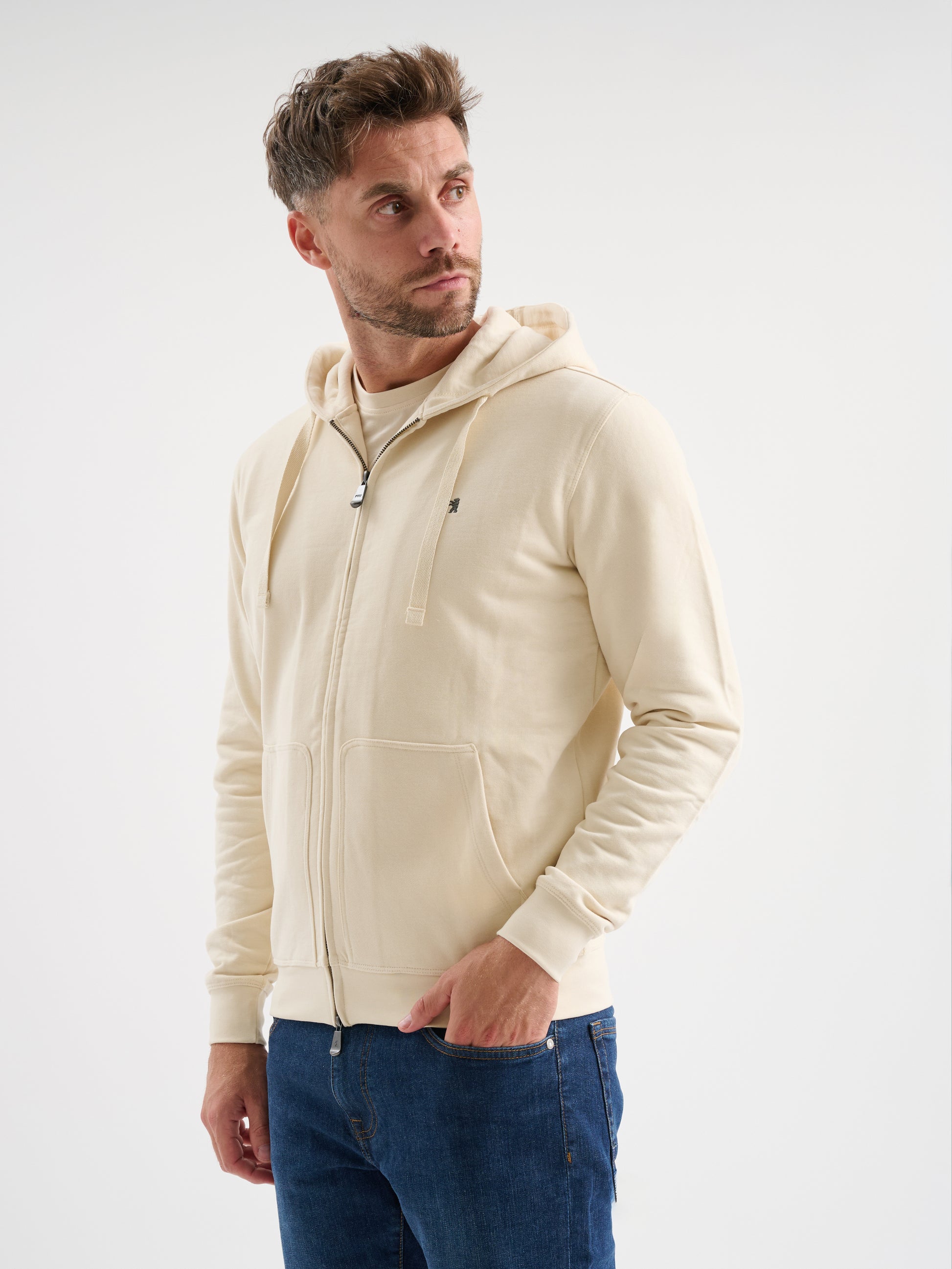 Felpa full zip con cappuccio a maniche lunghe in cotone garzato con tasche a marsupio sul fronte e logo ricamato, regular fit