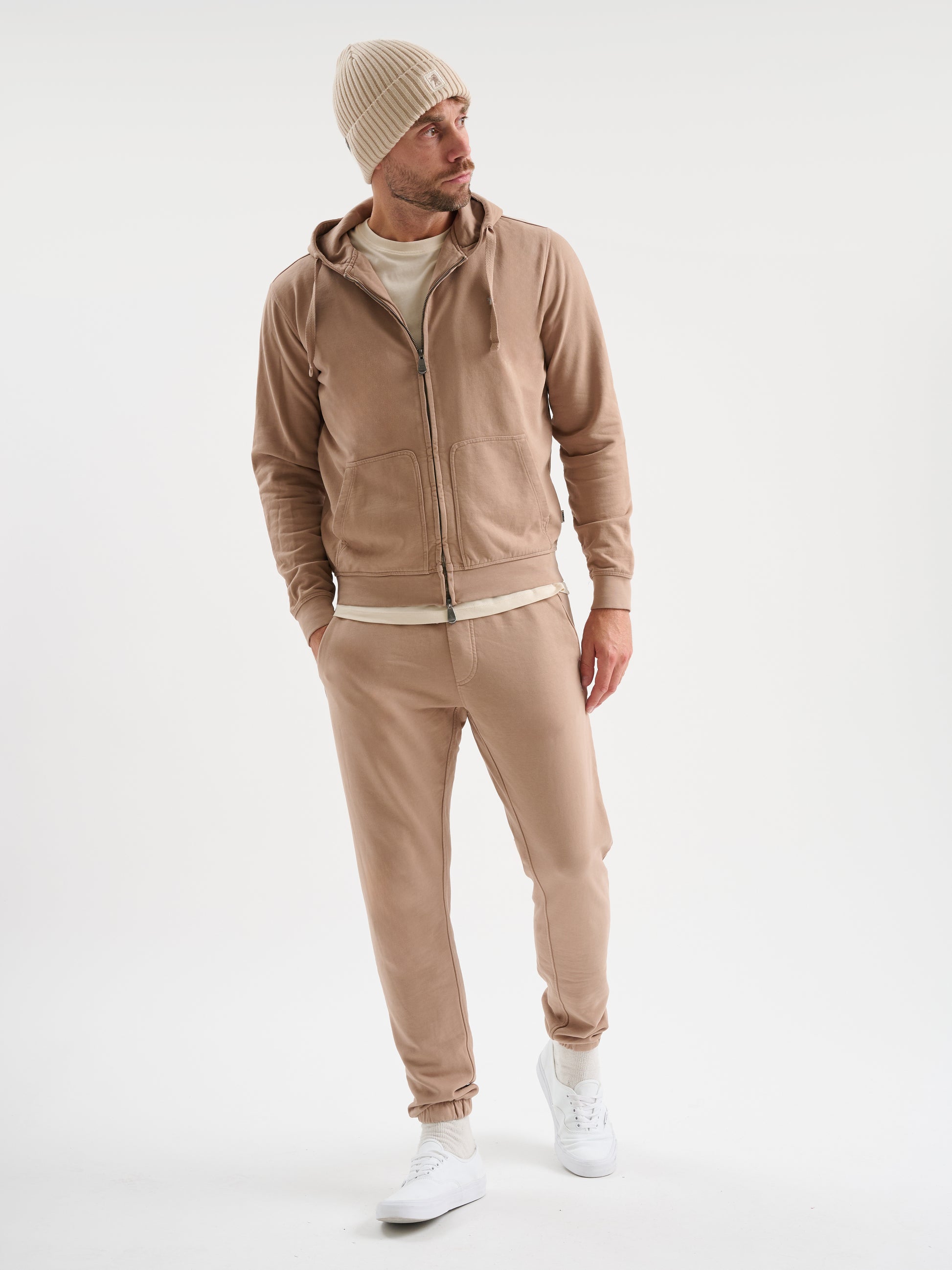 Jogger in cotone garzato, con cintura regolabile mediante coulisse, tasca a filetto applicata sul dietro e logo ricamato, slim fit