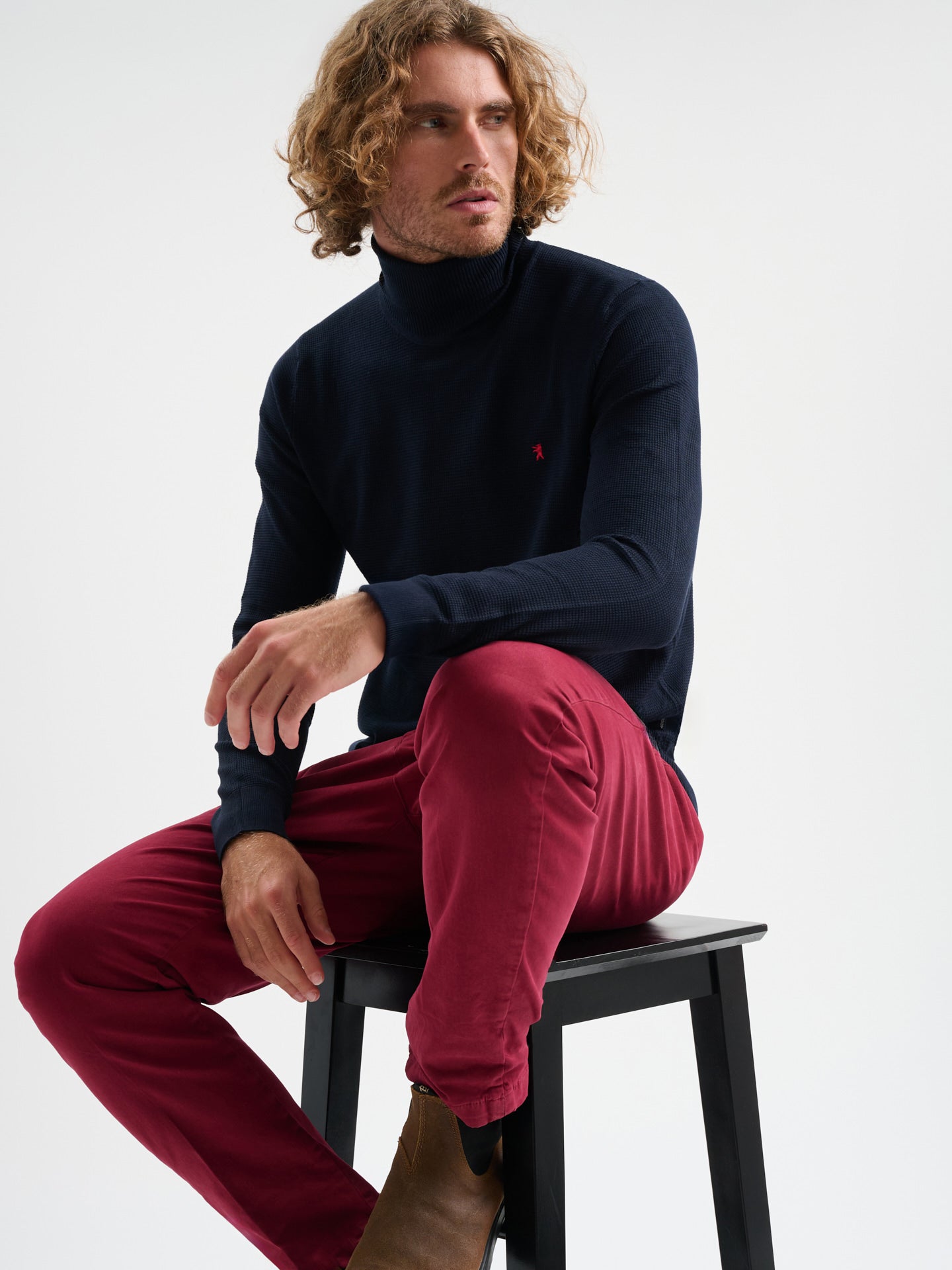 Maglia collo alto in punto miniwaffle a maniche lunghe, costine sui polsi, fondo, collo e logo ricamato, regular fit