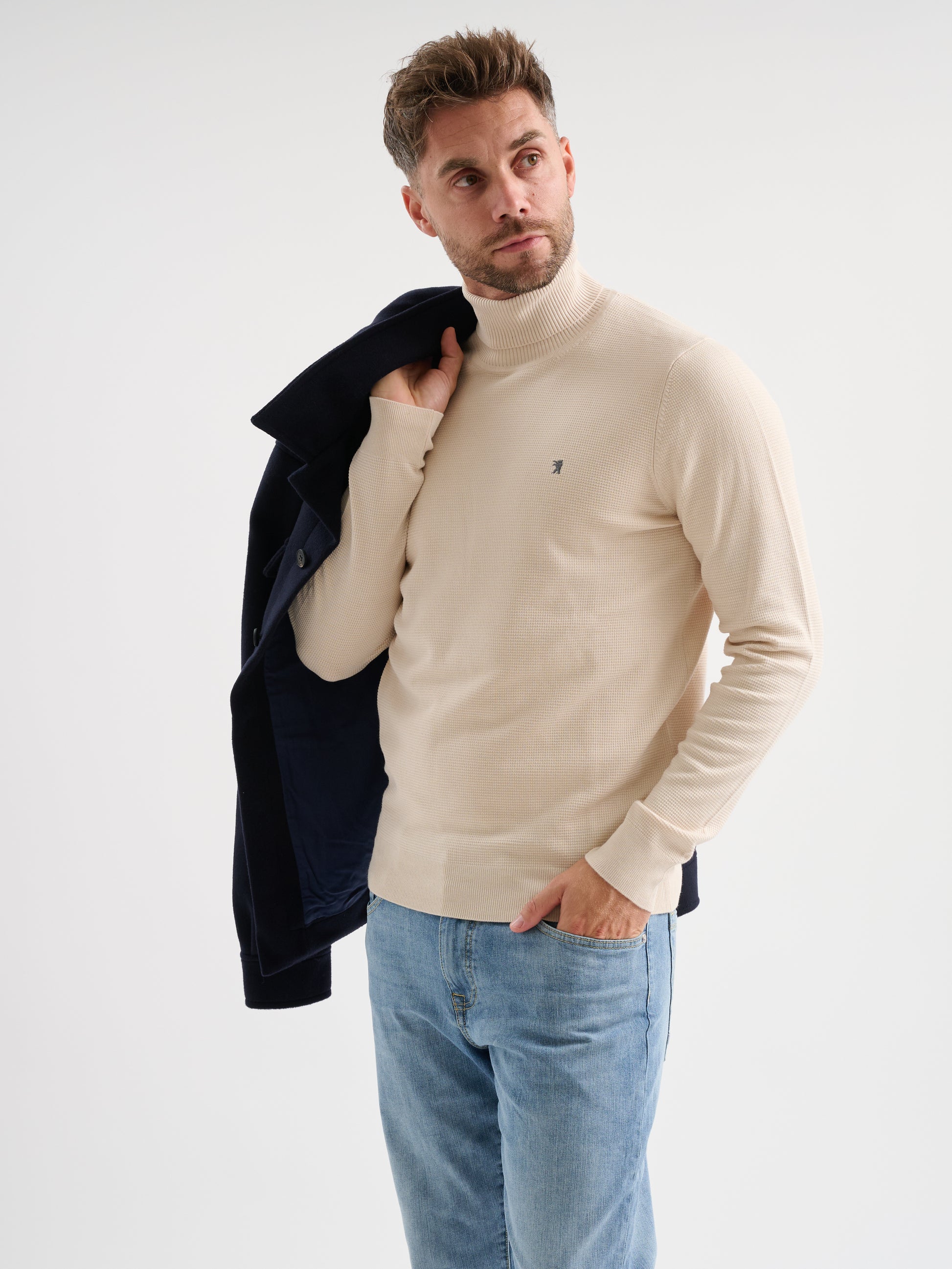 Maglia collo alto in punto miniwaffle a maniche lunghe, costine sui polsi, fondo, collo e logo ricamato, regular fit