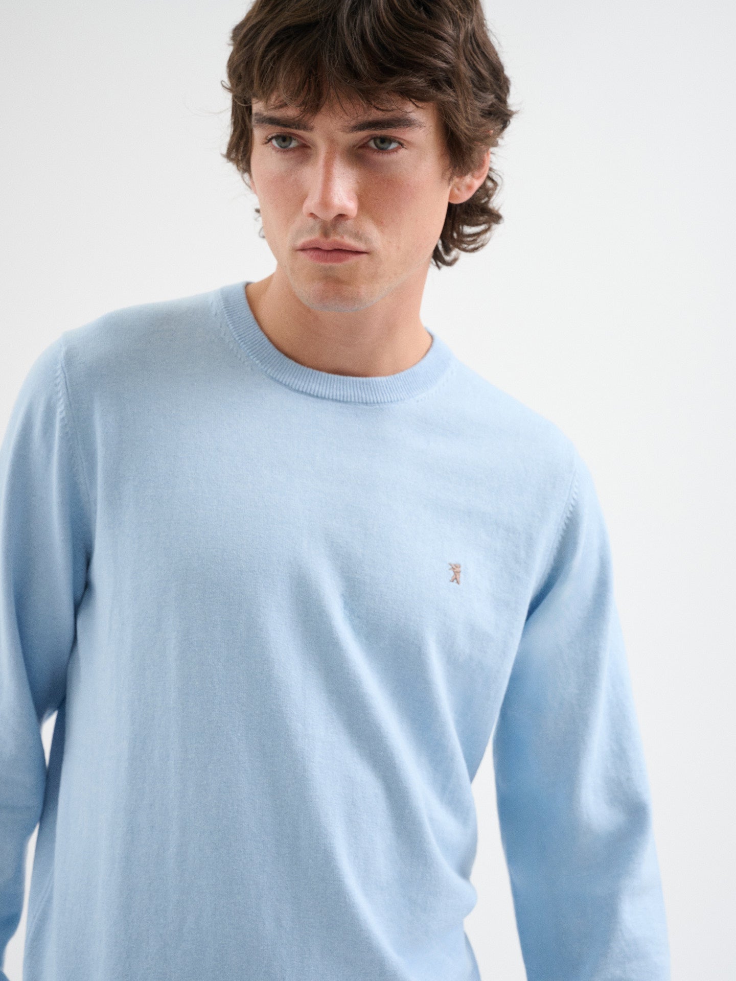Maglia girocollo in maglia rasata misto cotone, cashmere a maniche lunghe con costine su polsi, fondo e collo, con logo ricamato, regular fit