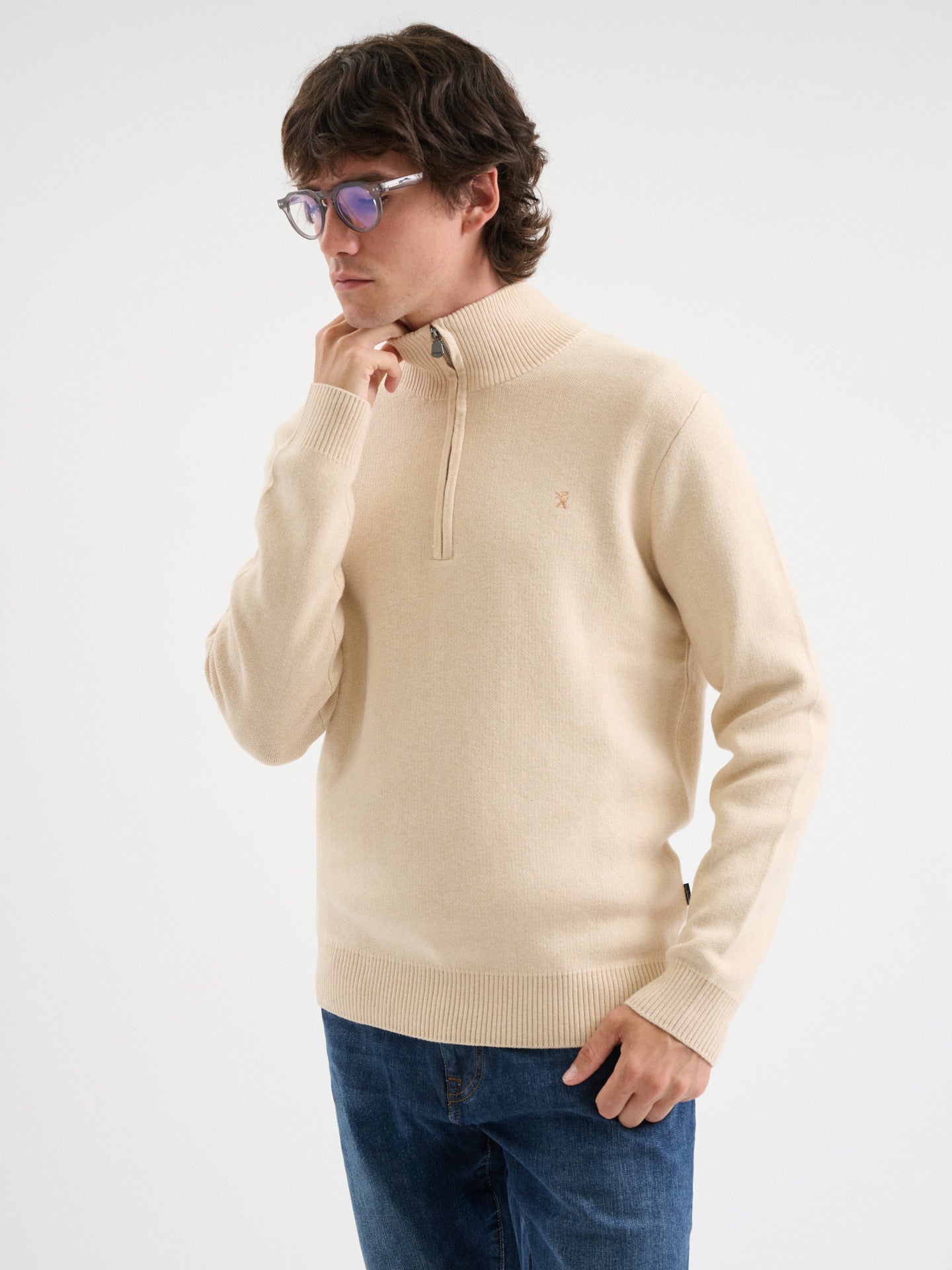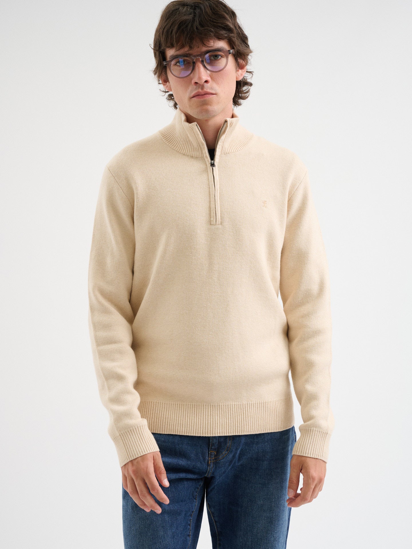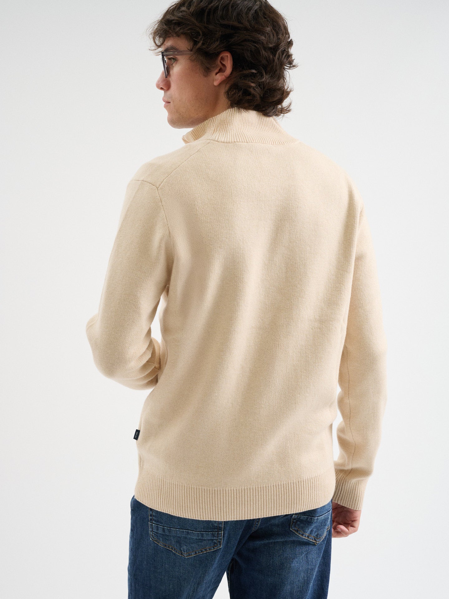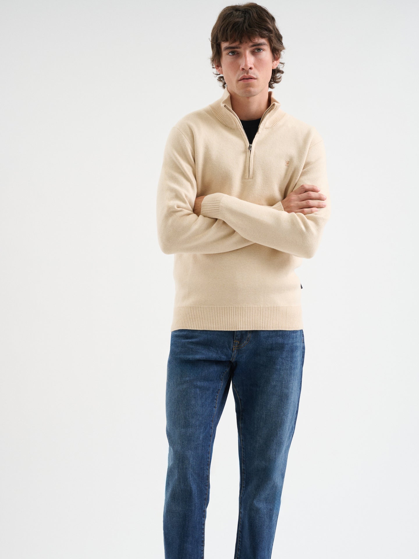 Maglia half zip in mesh jacquard a maniche lunghe con costine su polsi, fondo e collo e logo ricamato, regular fit