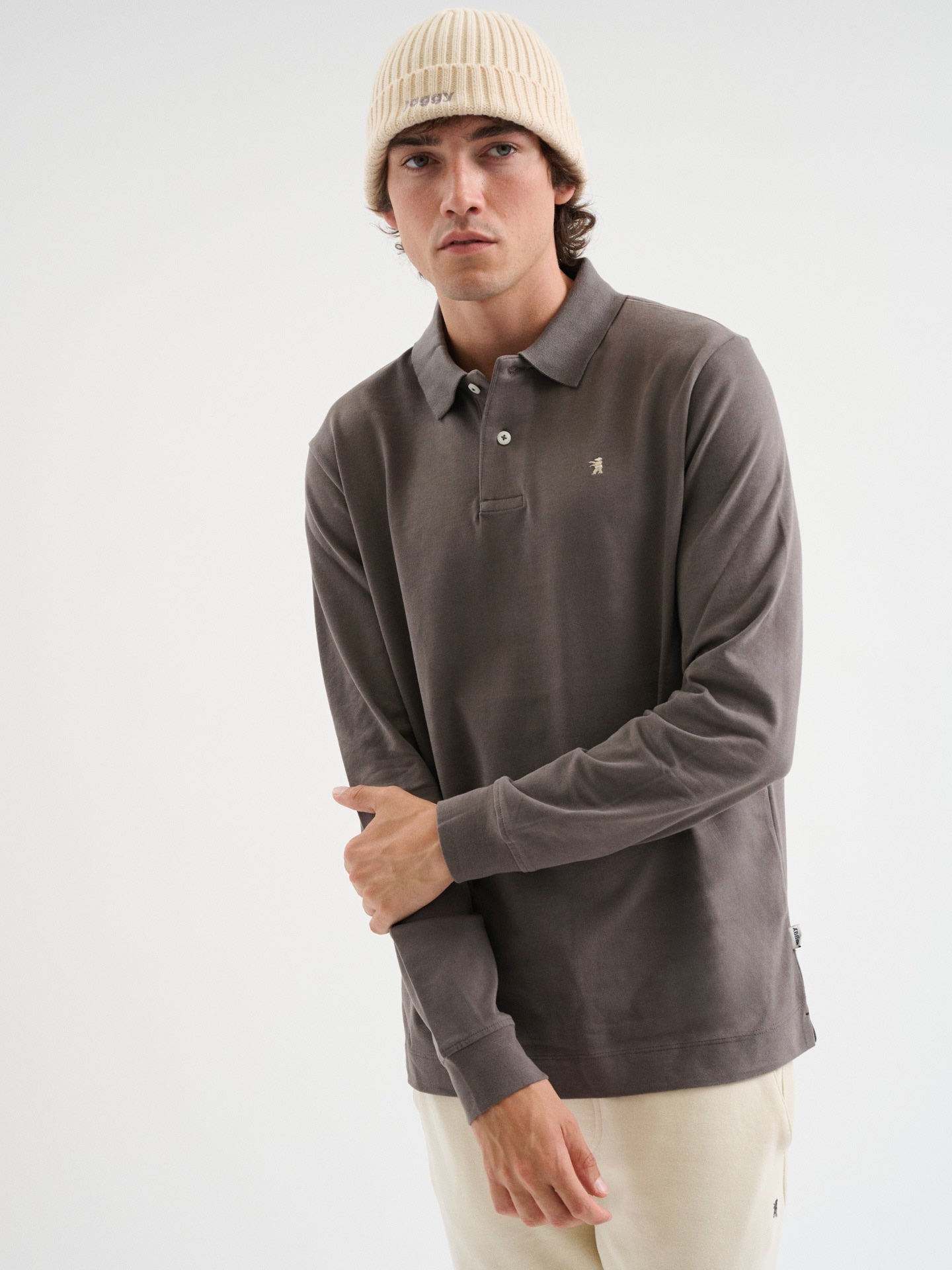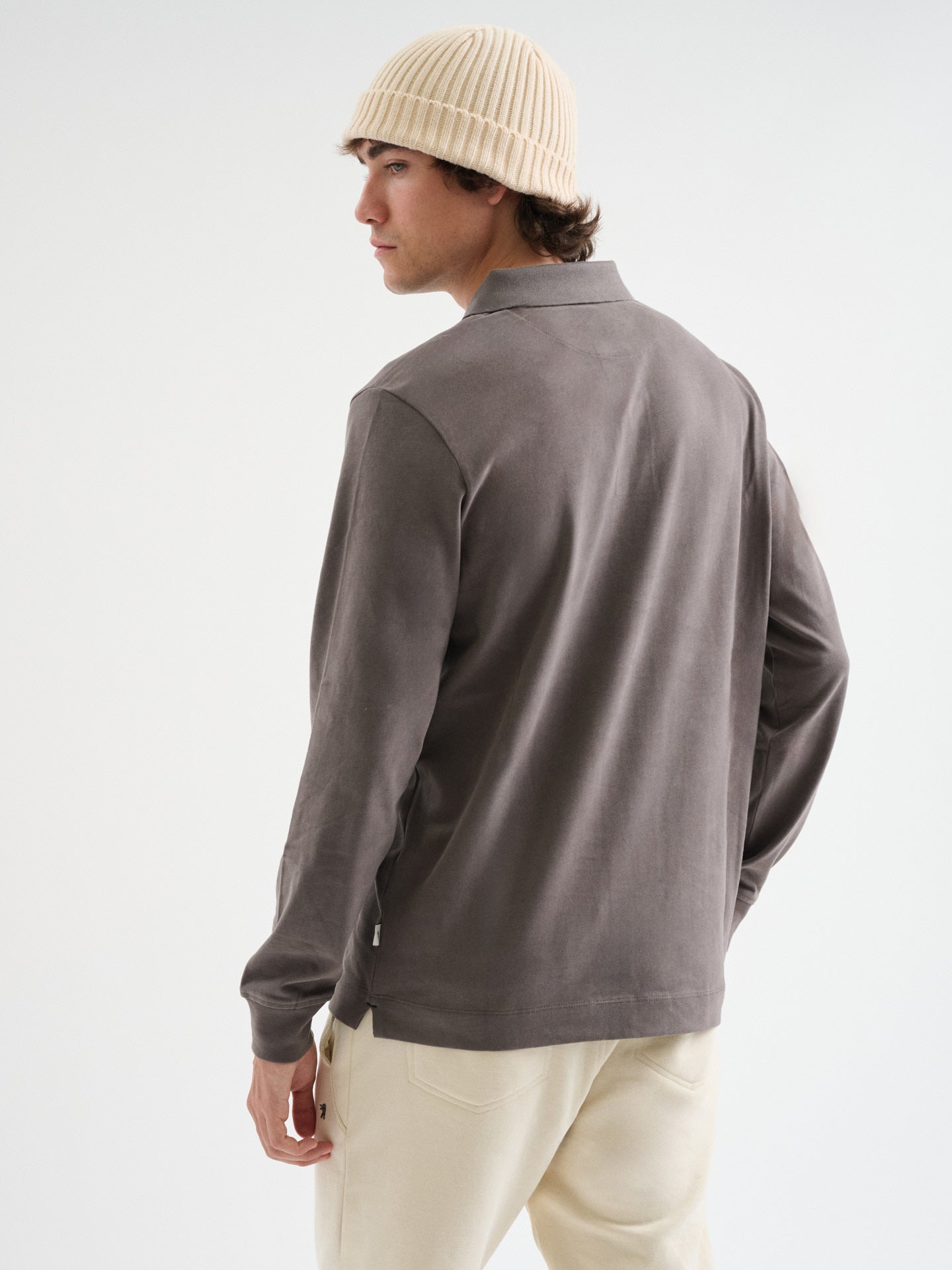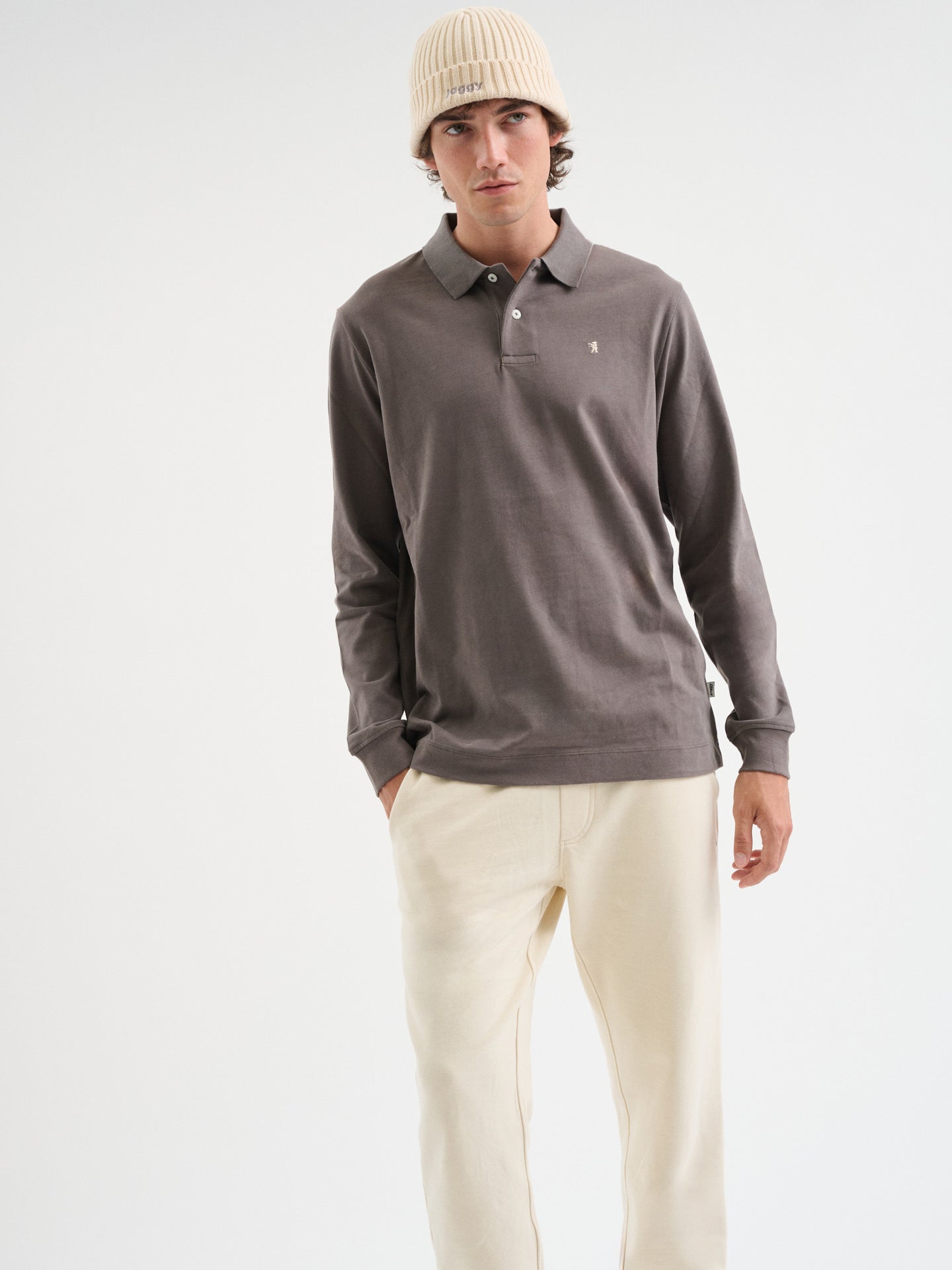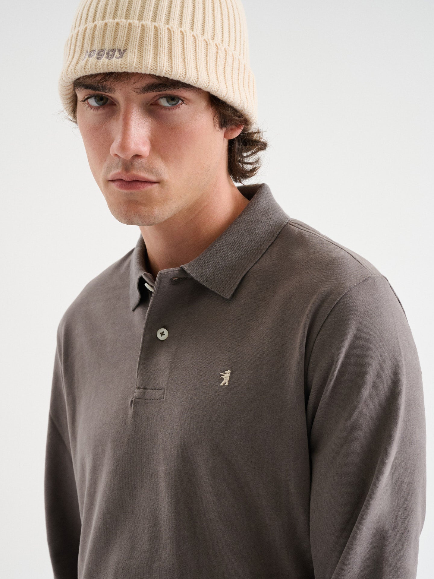 Polo a maniche lunghe in heavy jersey di cotone con logo ricamato e finiture smacchinate, regular fit