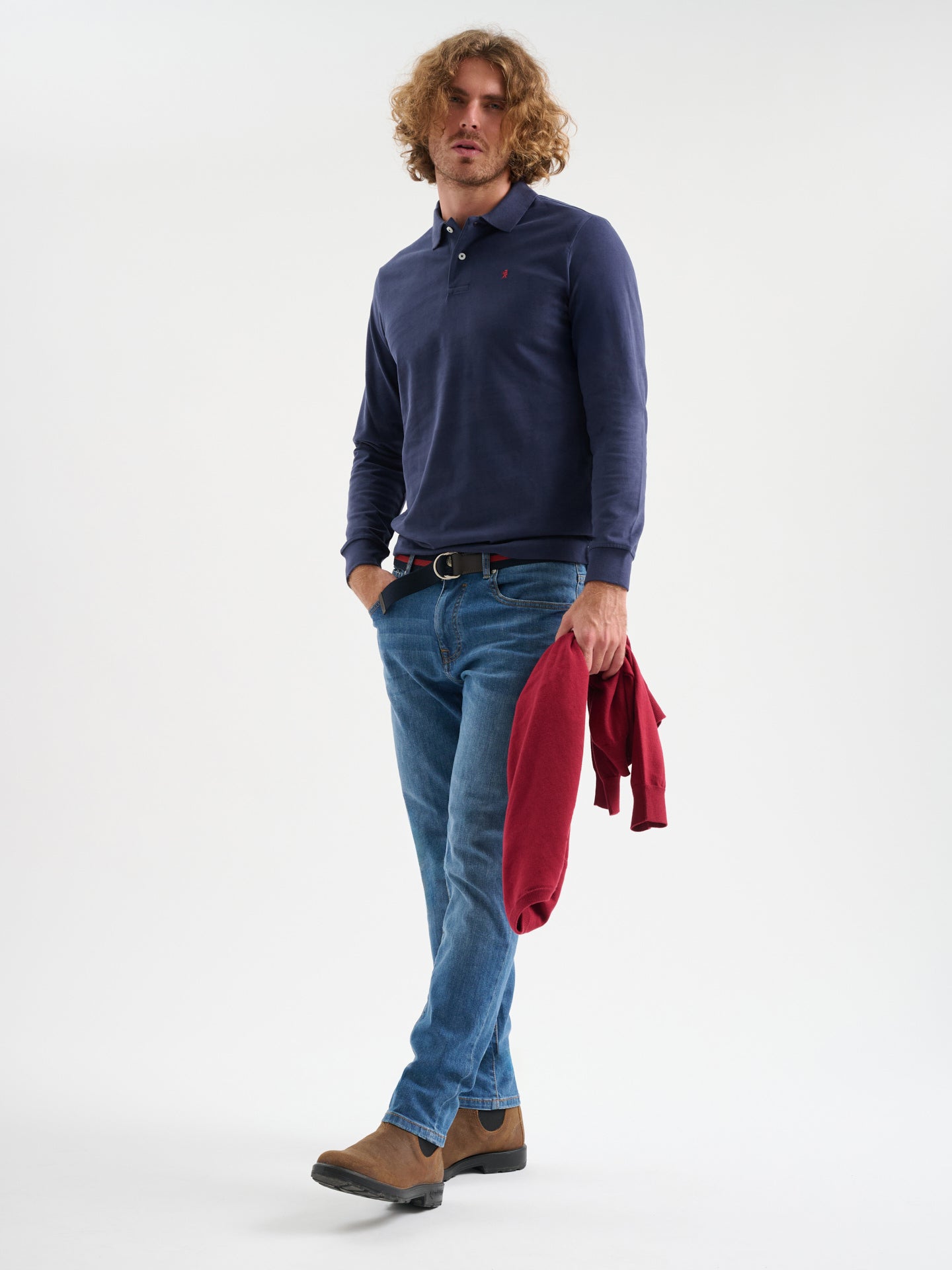 Polo a maniche lunghe in heavy jersey di cotone con logo ricamato e finiture smacchinate, regular fit
